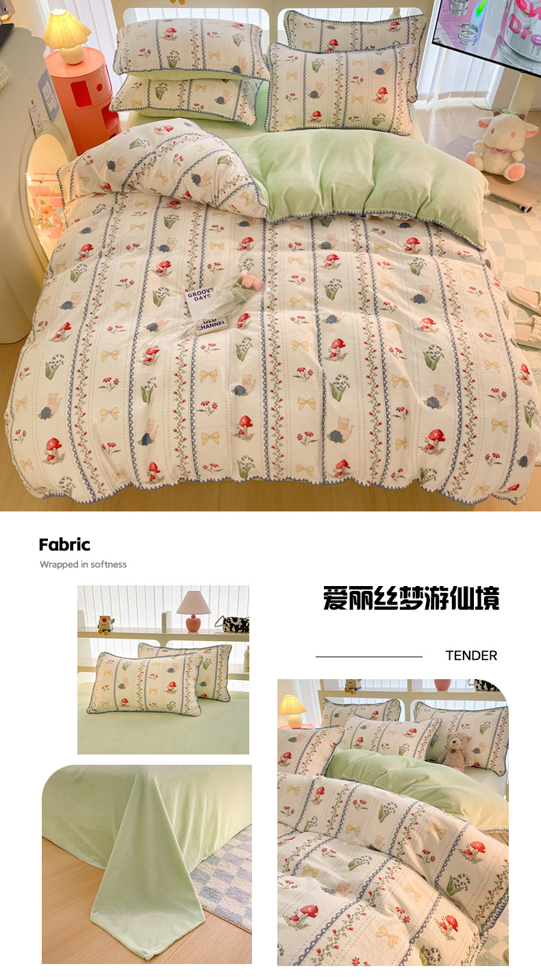 当前位置: 91家纺网 > 商品网购 > 床品套件 > 四件套 > 牛奶绒四件套 > 安哆啦家纺 2024新款牛奶绒三角针四件套 爱丽丝梦游仙境