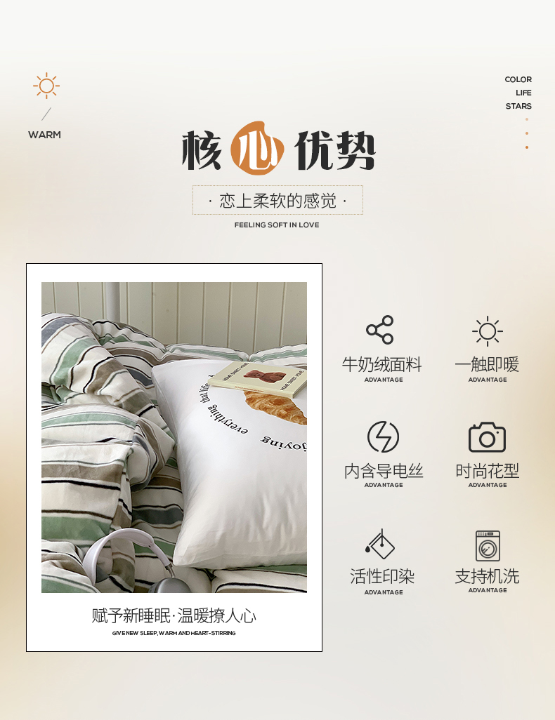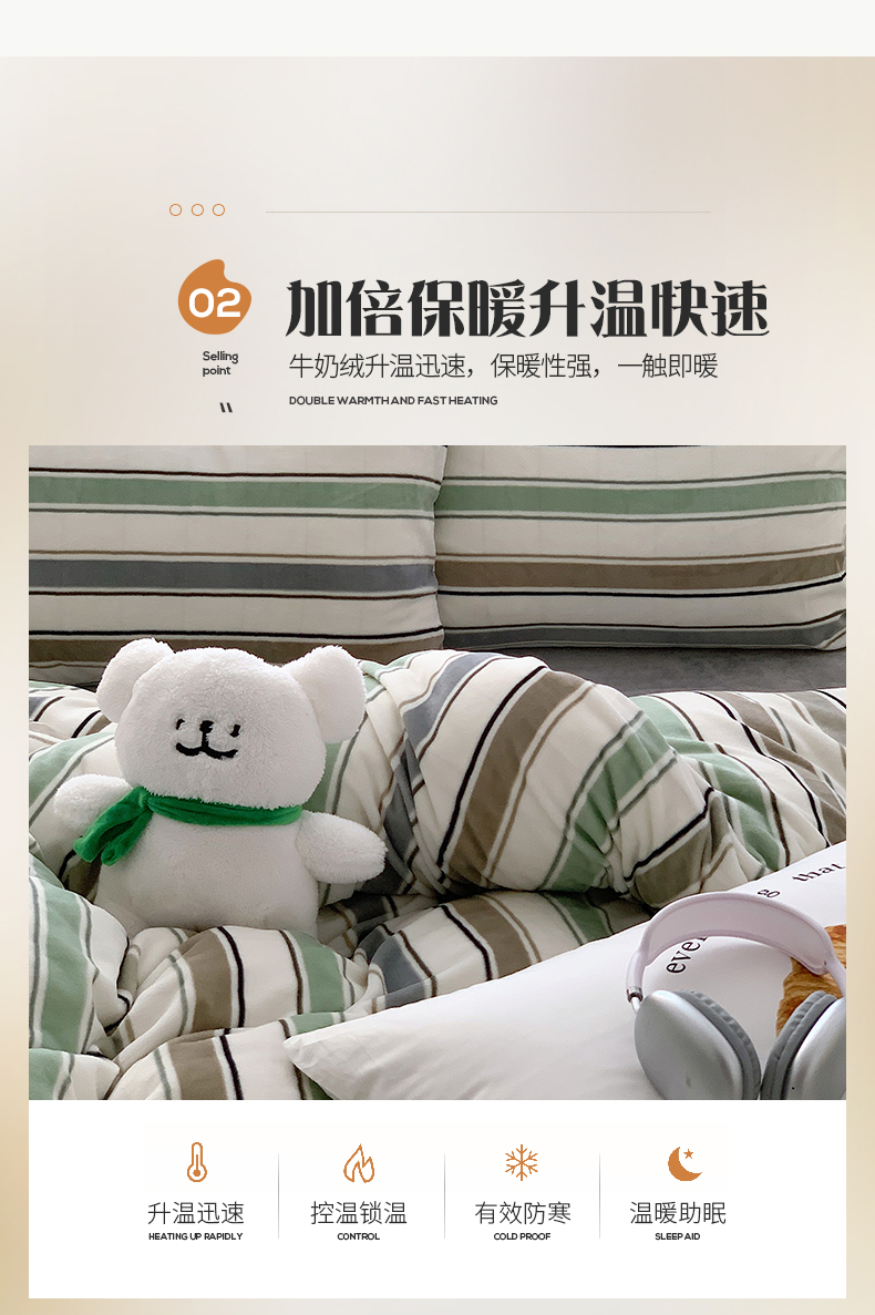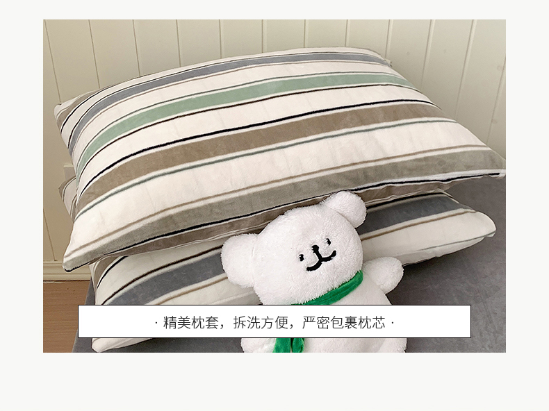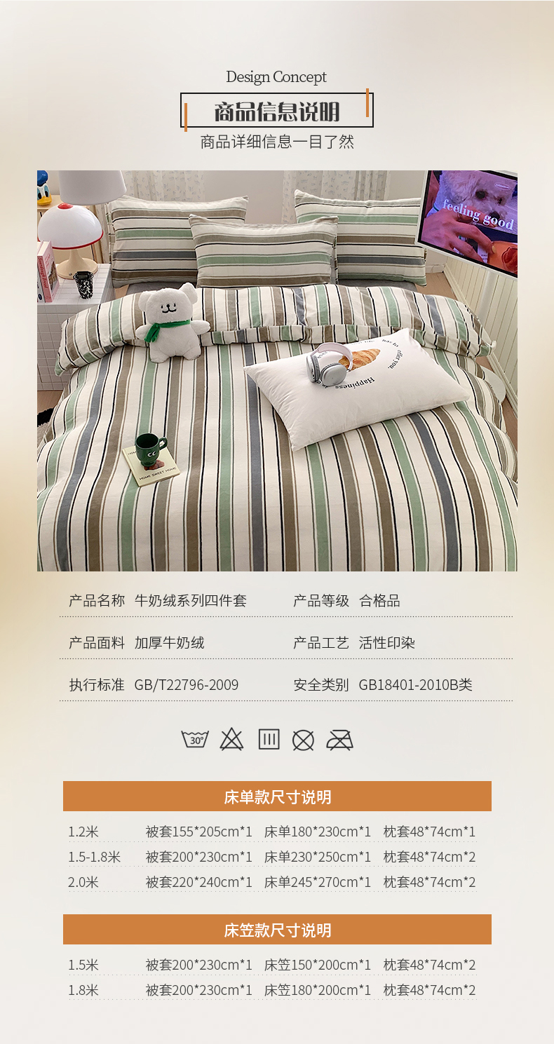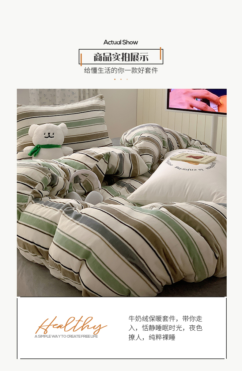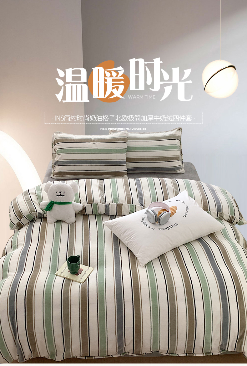 商品名称:桃子家居 2023新款ins简约时尚奶油格子北欧极简加厚牛奶绒四件套 间尚绿