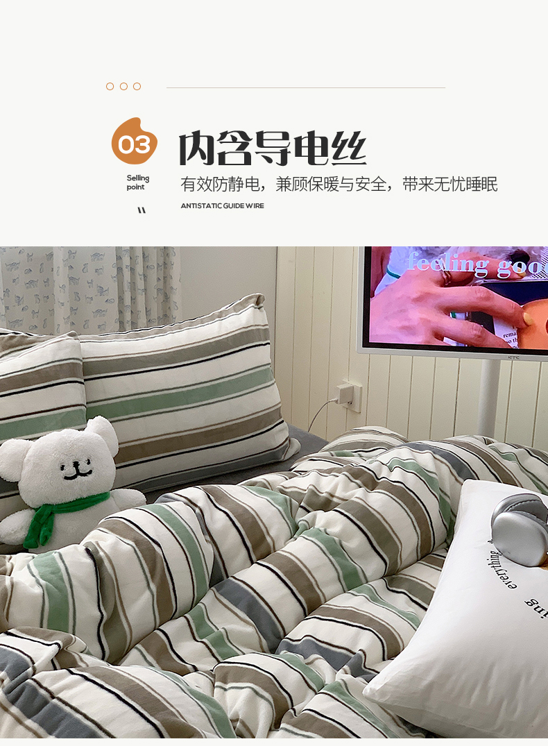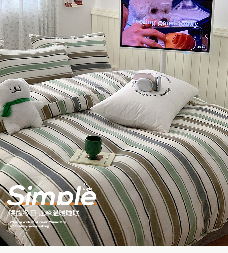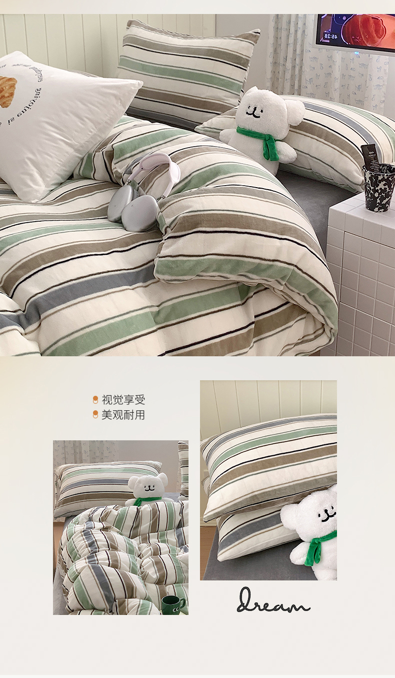桃子家居 2023新款ins简约时尚奶油格子北欧极简加厚牛奶绒四件套 间尚绿