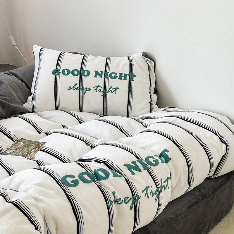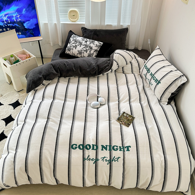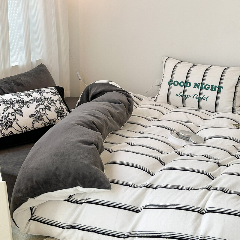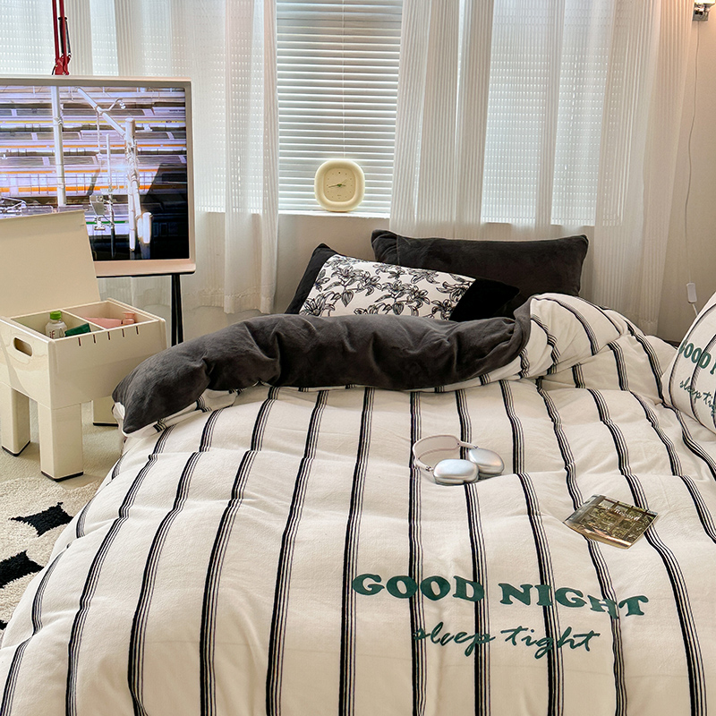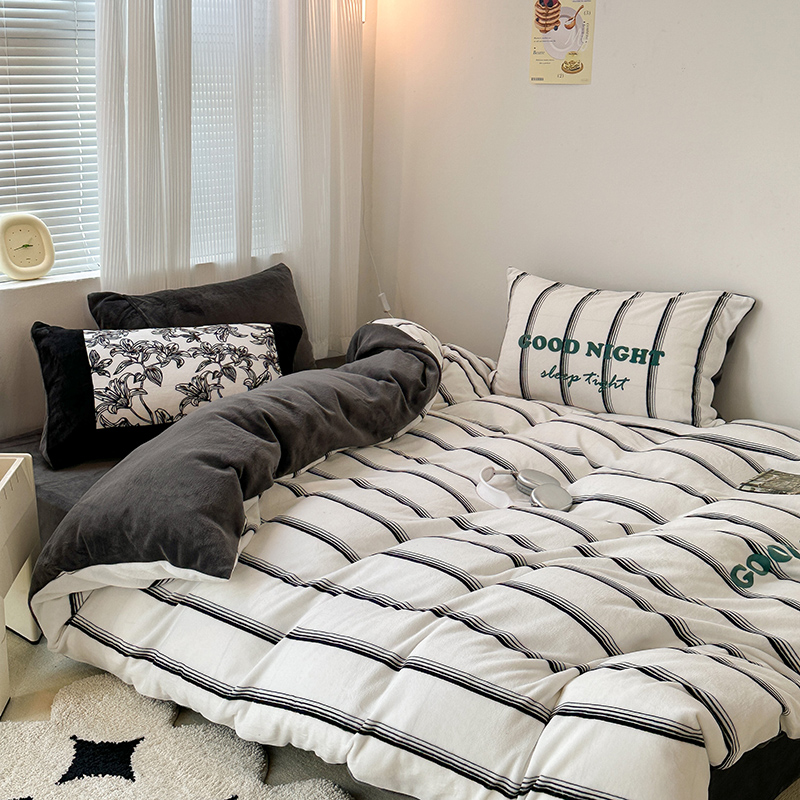 商品名称:昔可家纺 2023新款大版数码印花保暖牛奶绒四件套 黑条茶歇花