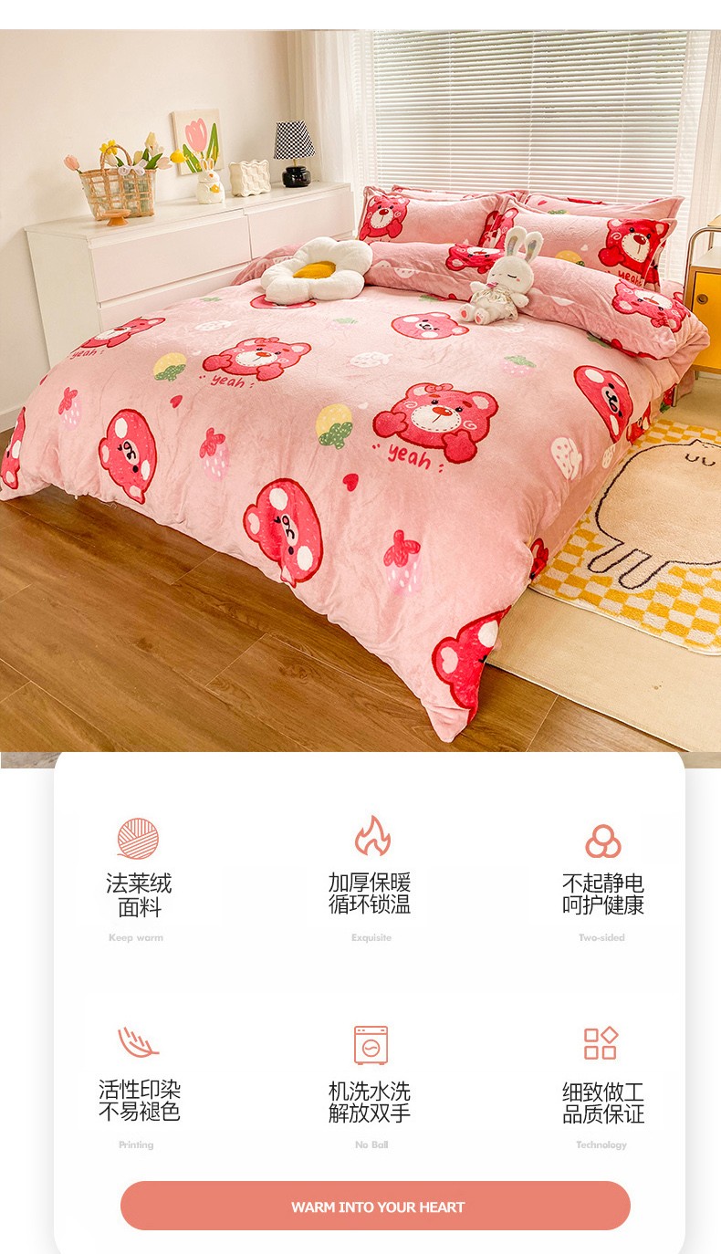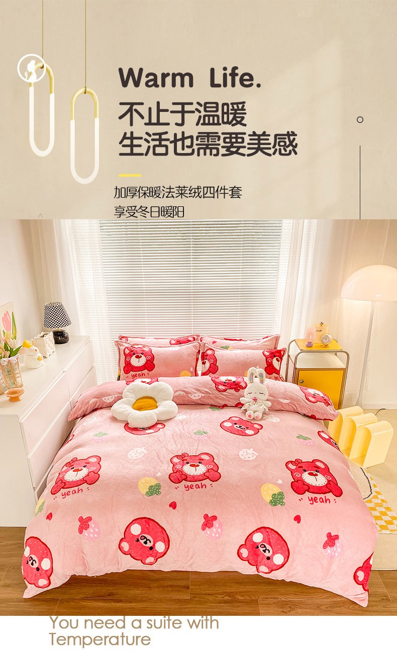 当前位置: 91家纺网 > 商品网购 > 床品套件 > 四件套 > 法莱绒四件套 > 妖妖家纺 2023新款 法莱绒加厚保暖四件套 嘟嘟熊头
