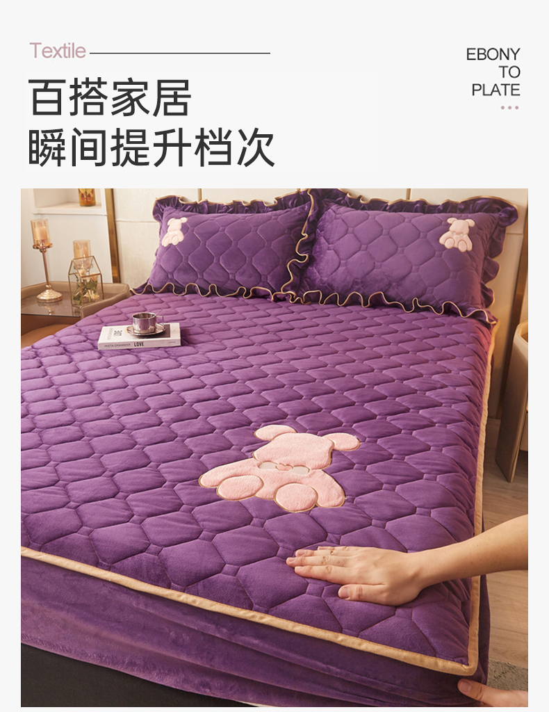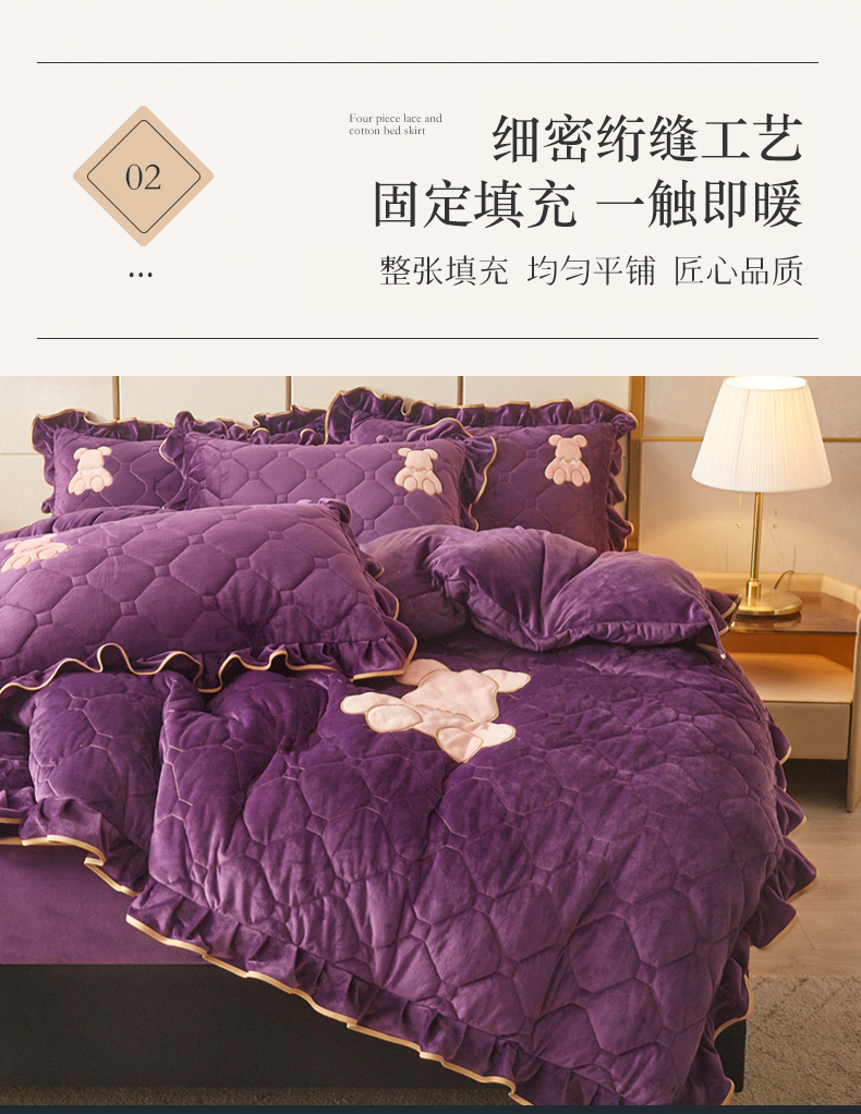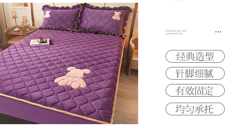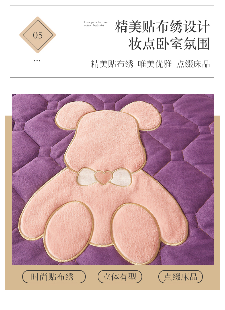 屹成 2024新款水晶绒夹棉床笠款四件套贴布绣款-小熊款 高贵紫