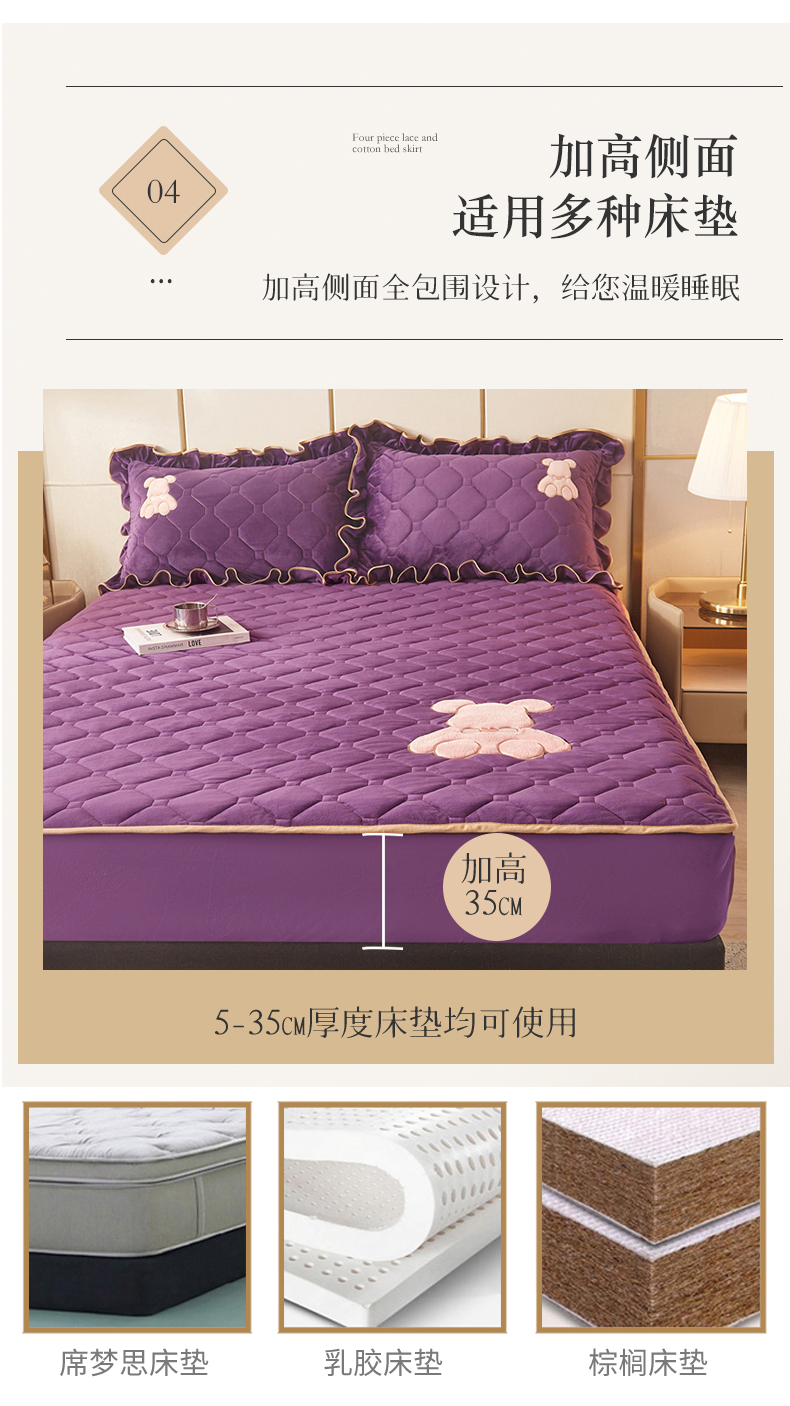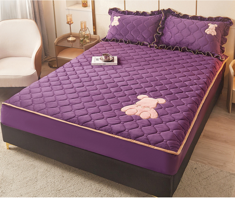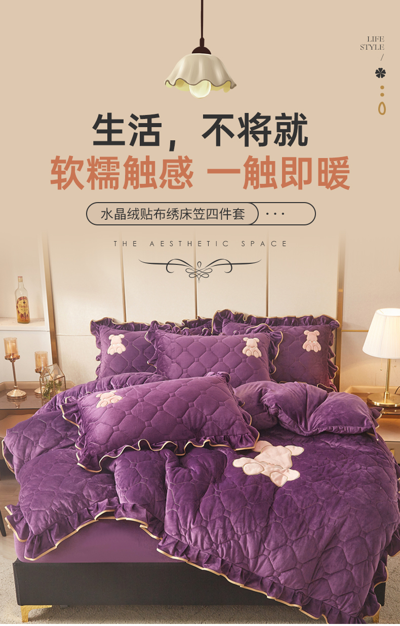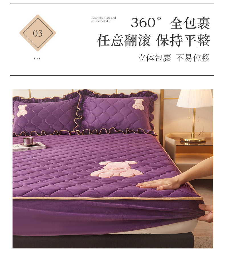 屹成 2024新款水晶绒夹棉床笠款四件套贴布绣款-小熊款 高贵紫
