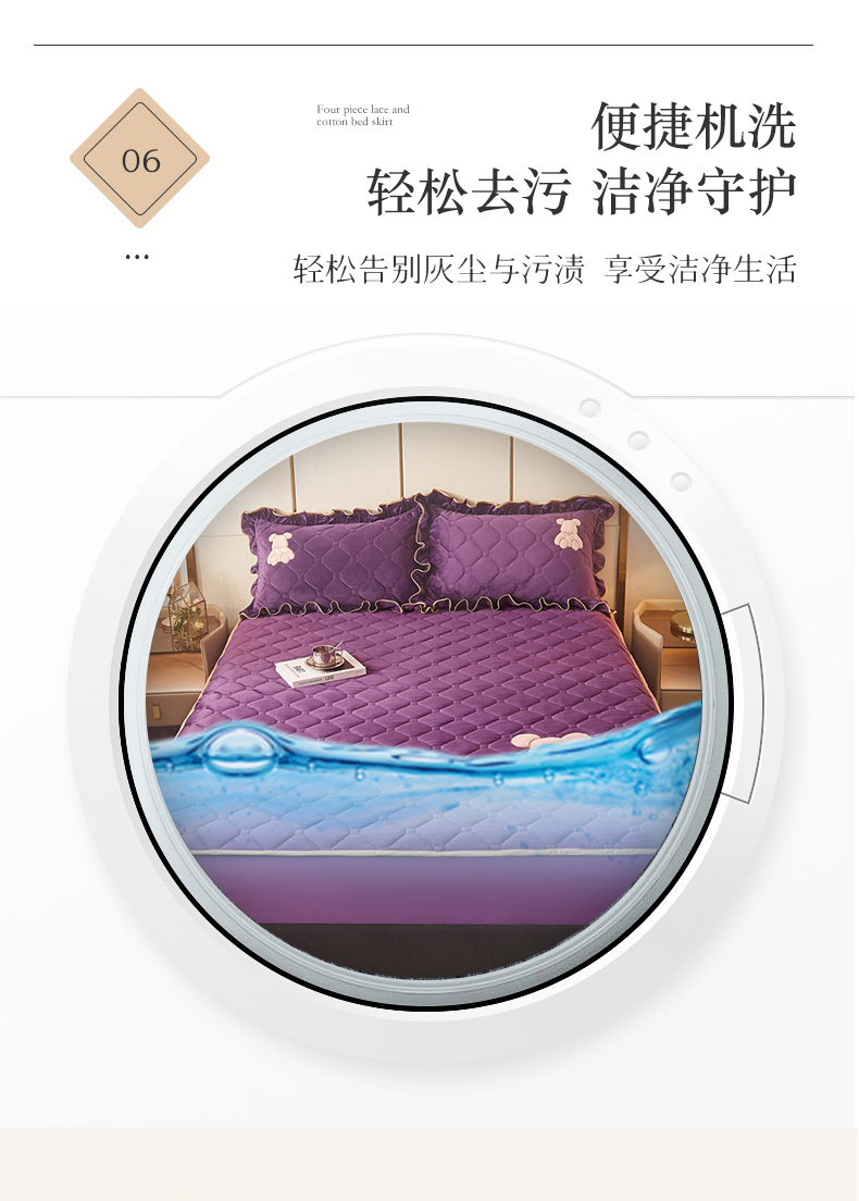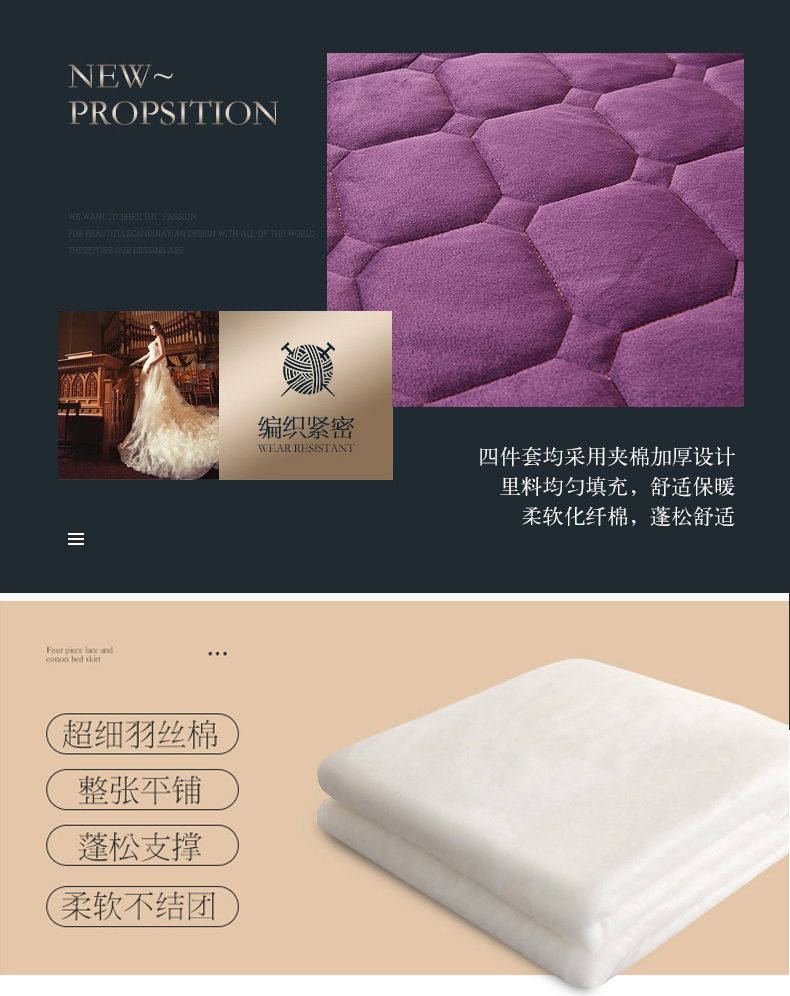 (总)屹成家纺 2024新款天竺棉夹棉床裙四件套,玳瑁紫,典雅驼,豆沙,格调蓝,经典灰,孔雀绿
