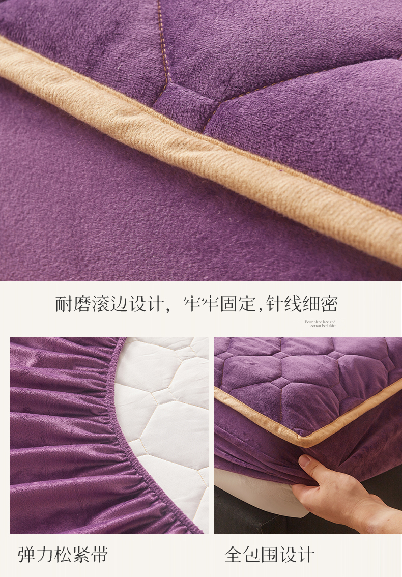(总)屹成家纺2025新款水晶绒夹棉绗缝床裙四件套(塞纳河畔)四件套起售价不低于230元,大红,豆沙,翡翠绿,粉玉,橄榄绿,蔚蓝,银灰