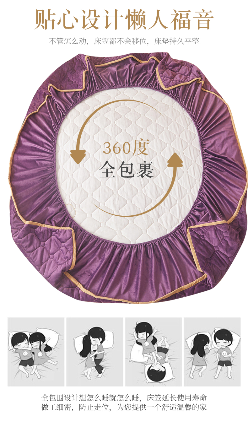 (总)屹成家纺2025新款水晶绒夹棉绗缝蕾丝床裙三件套(塞纳河畔)床裙单件起售价不低于105元,大红,豆沙,翡翠绿,粉玉,橄榄绿,蔚蓝,银灰