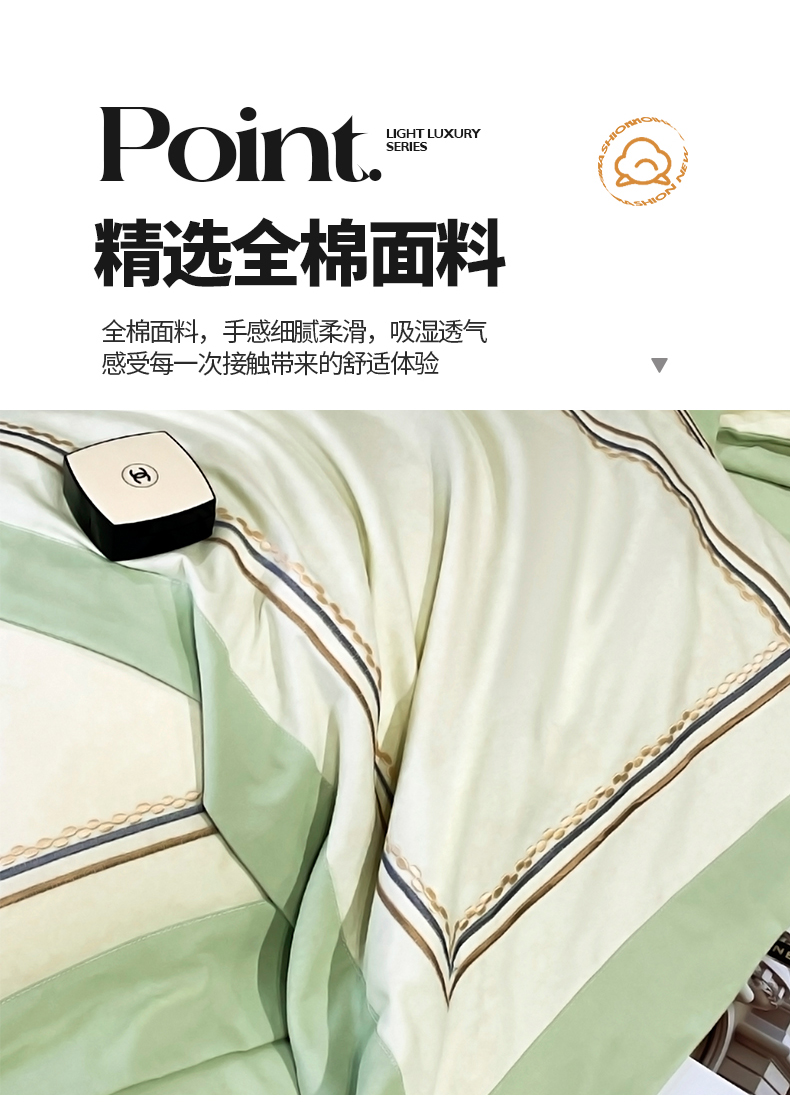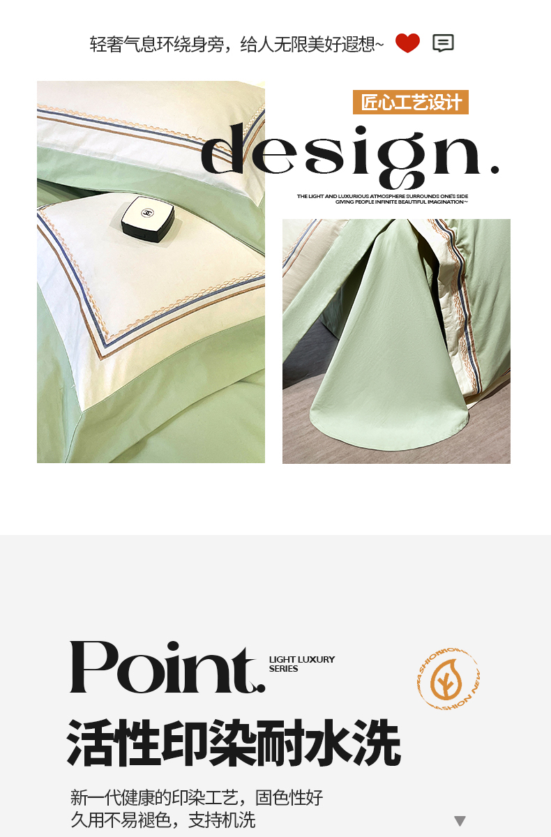 商品名称:懒猫 2024新款高精密全棉磨毛绣花四件套 泰洛-晴水绿