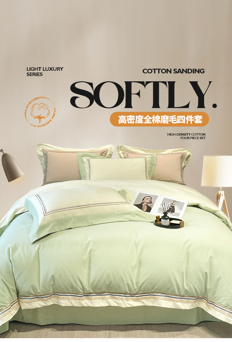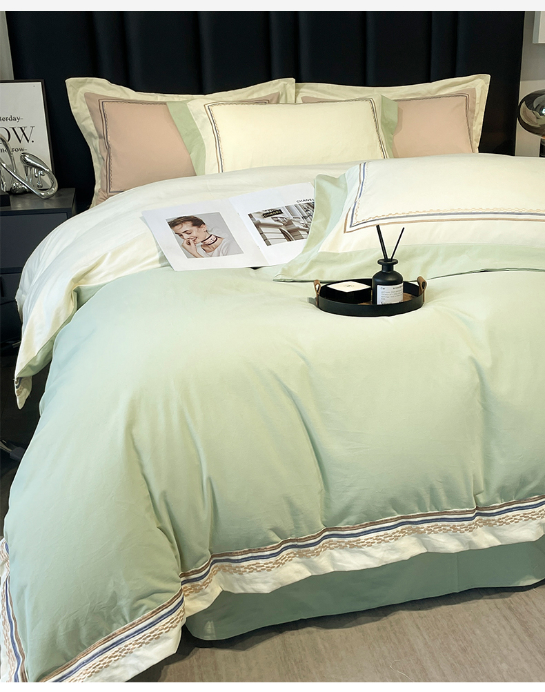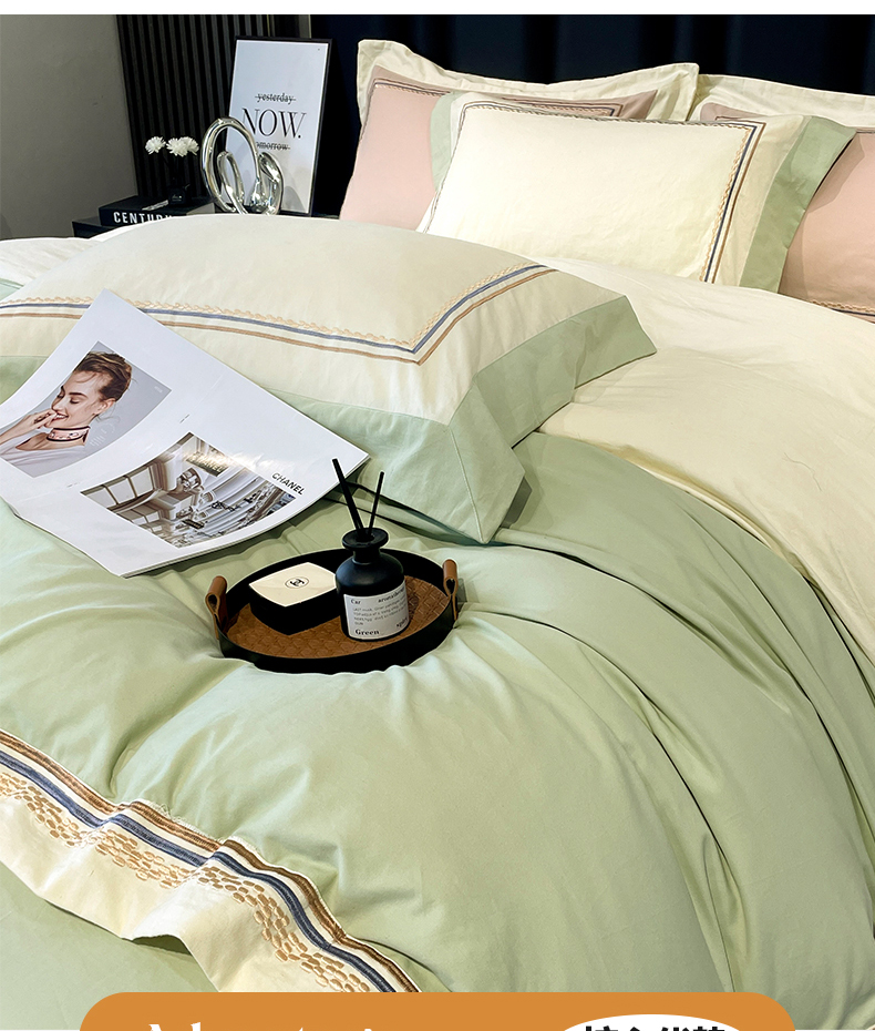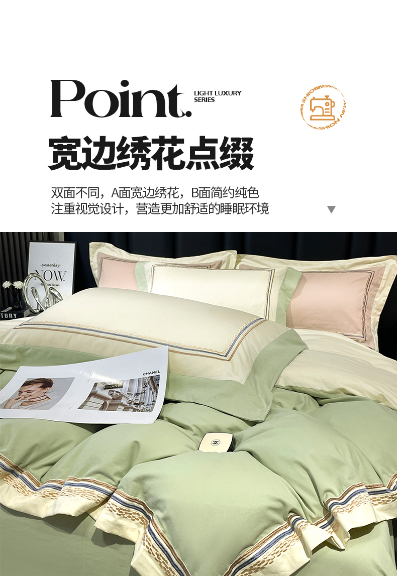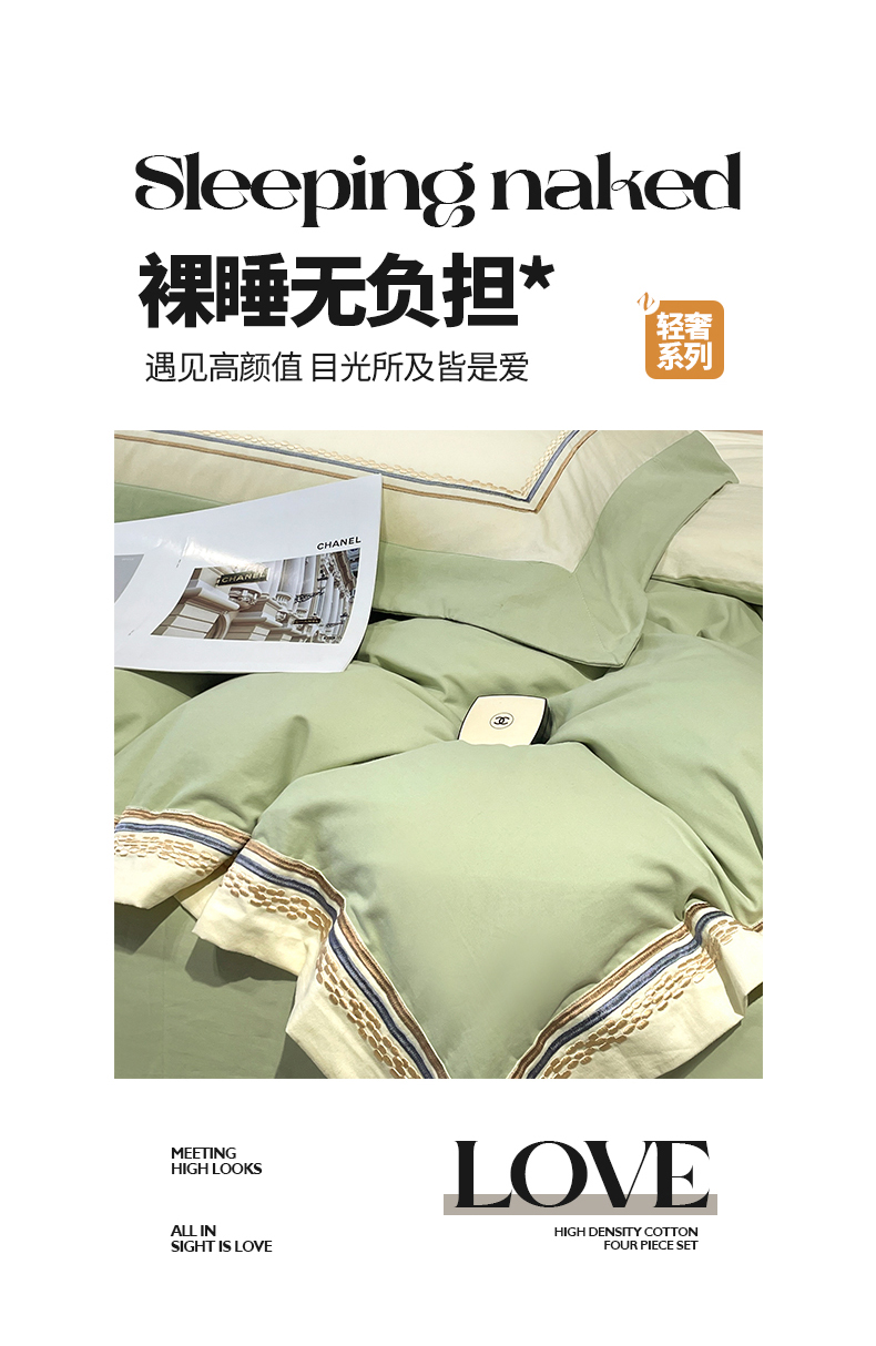 懒猫 2024新款高精密全棉磨毛绣花四件套 泰洛-晴水绿