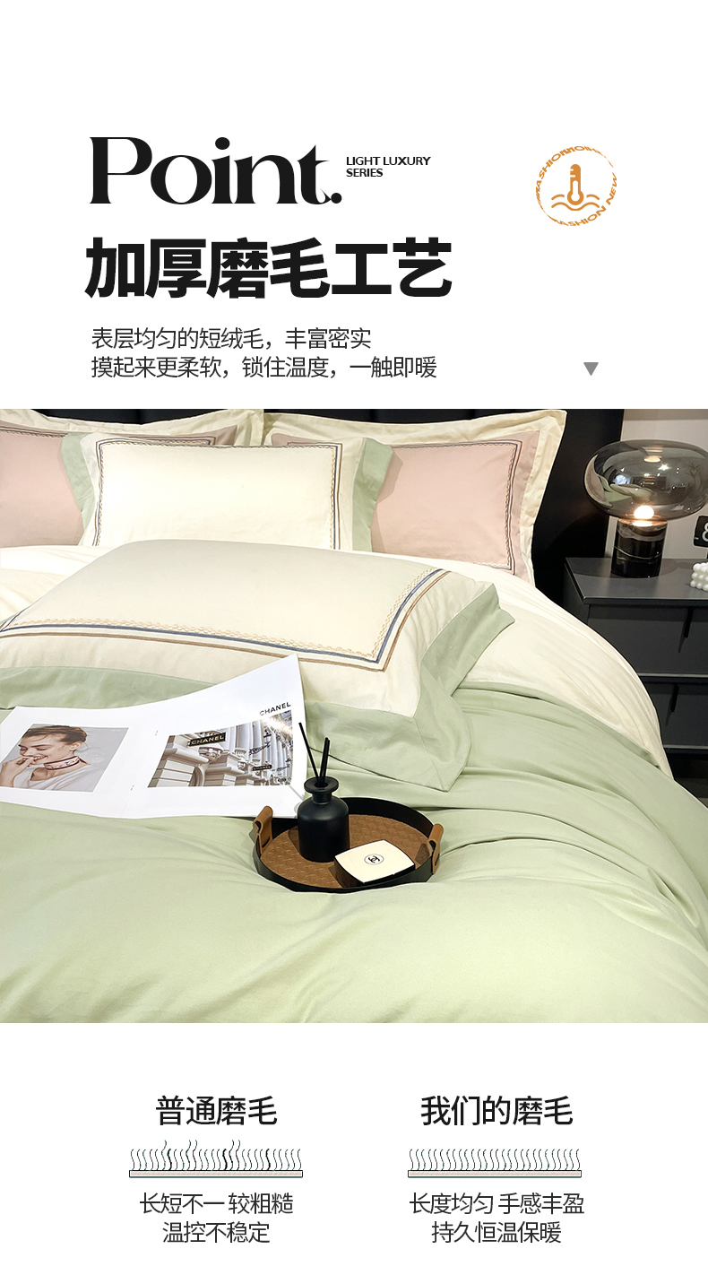 (总)懒猫家纺 2025新款A类贝壳绣纯色海獭绒四件套,橘子红,落霞紫,玫瑰粉,拿铁咖,暖茶棕,清水绿,柔雾灰,桃喜粉,杏仁白
