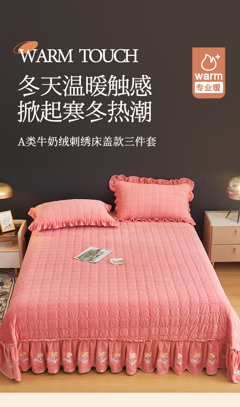 (总)恒爱家纺 2025新款牛奶绒贴布绣夹棉床裙四件套,豆沙红,浪漫紫,天空蓝,温馨粉,象牙白