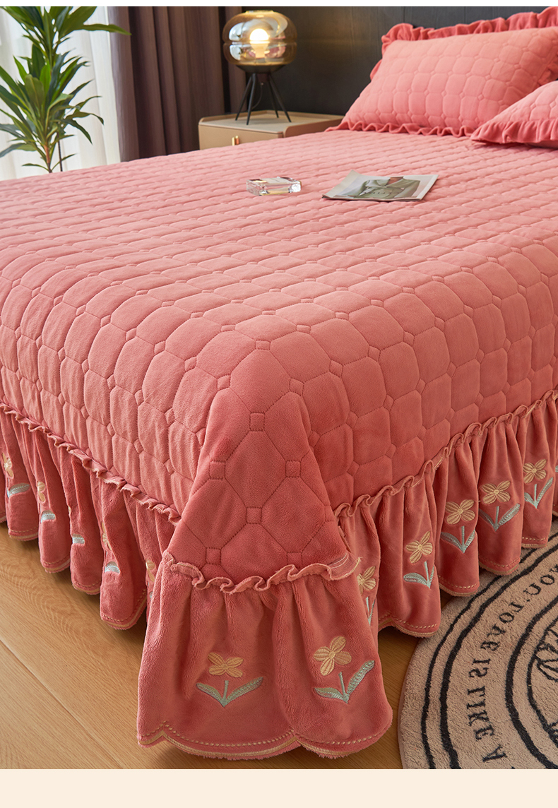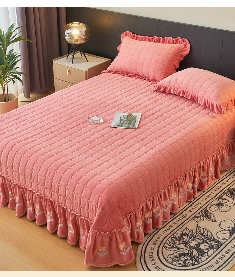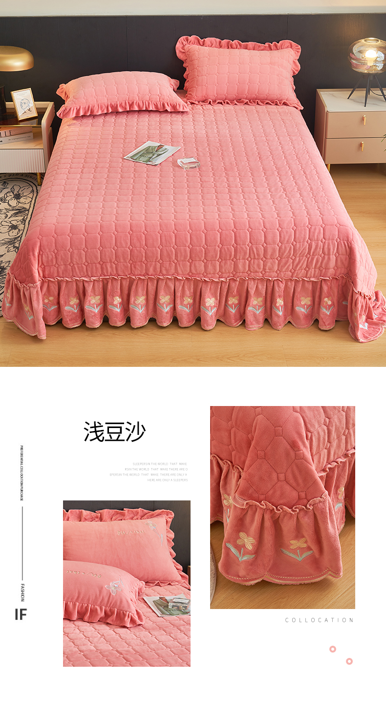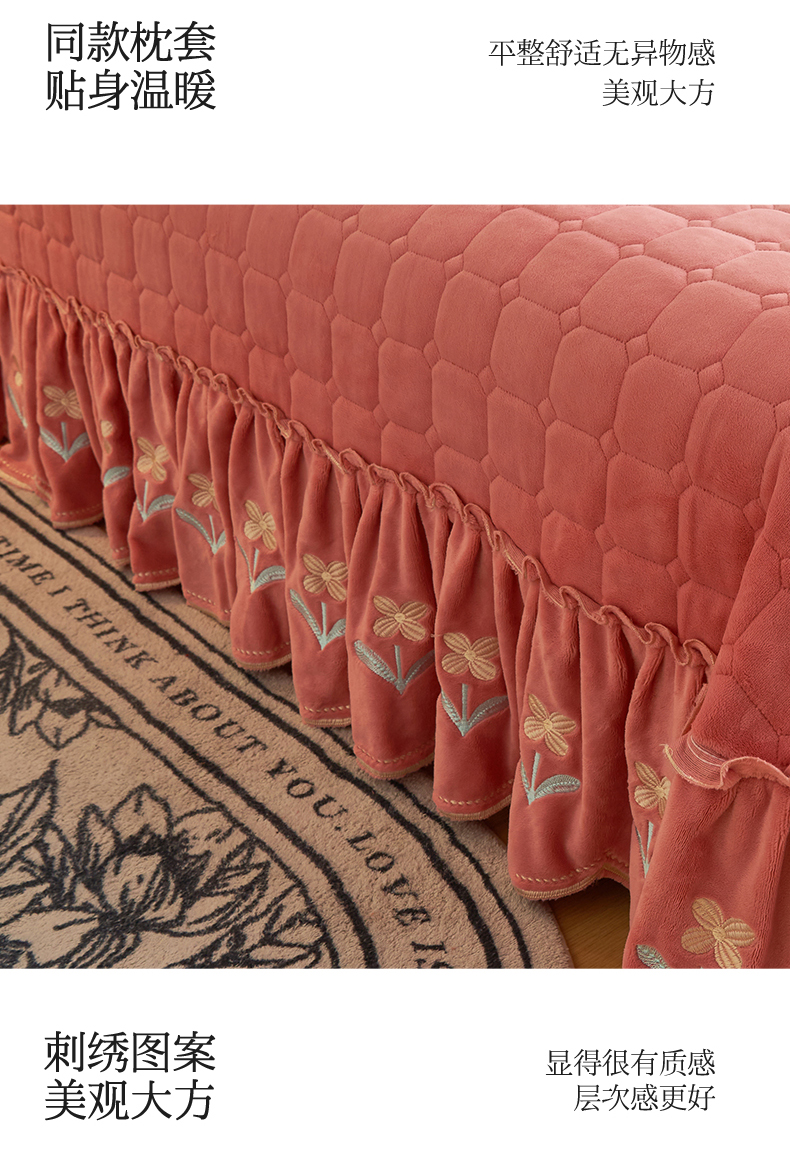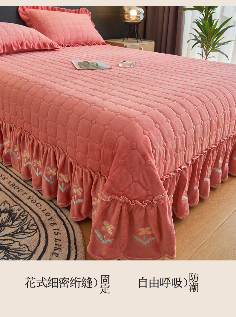 (总)恒爱 2022秋冬水晶绒翩翩花舞夹棉床裙四件套,大红色,豆沙红,橄榄绿,公主粉,桔色,咖啡色,孔雀绿,拉菲红,罗兰紫,玫红色,美人玉,米白色,米驼色,抹茶绿,浅灰色,紫色