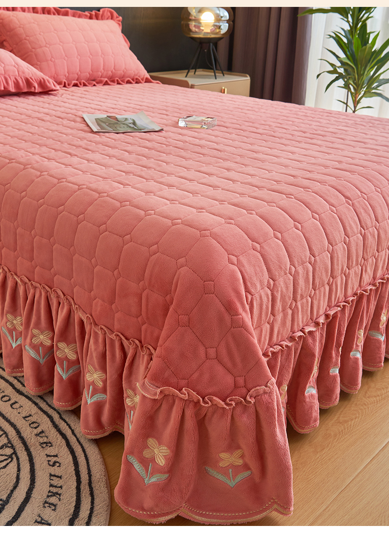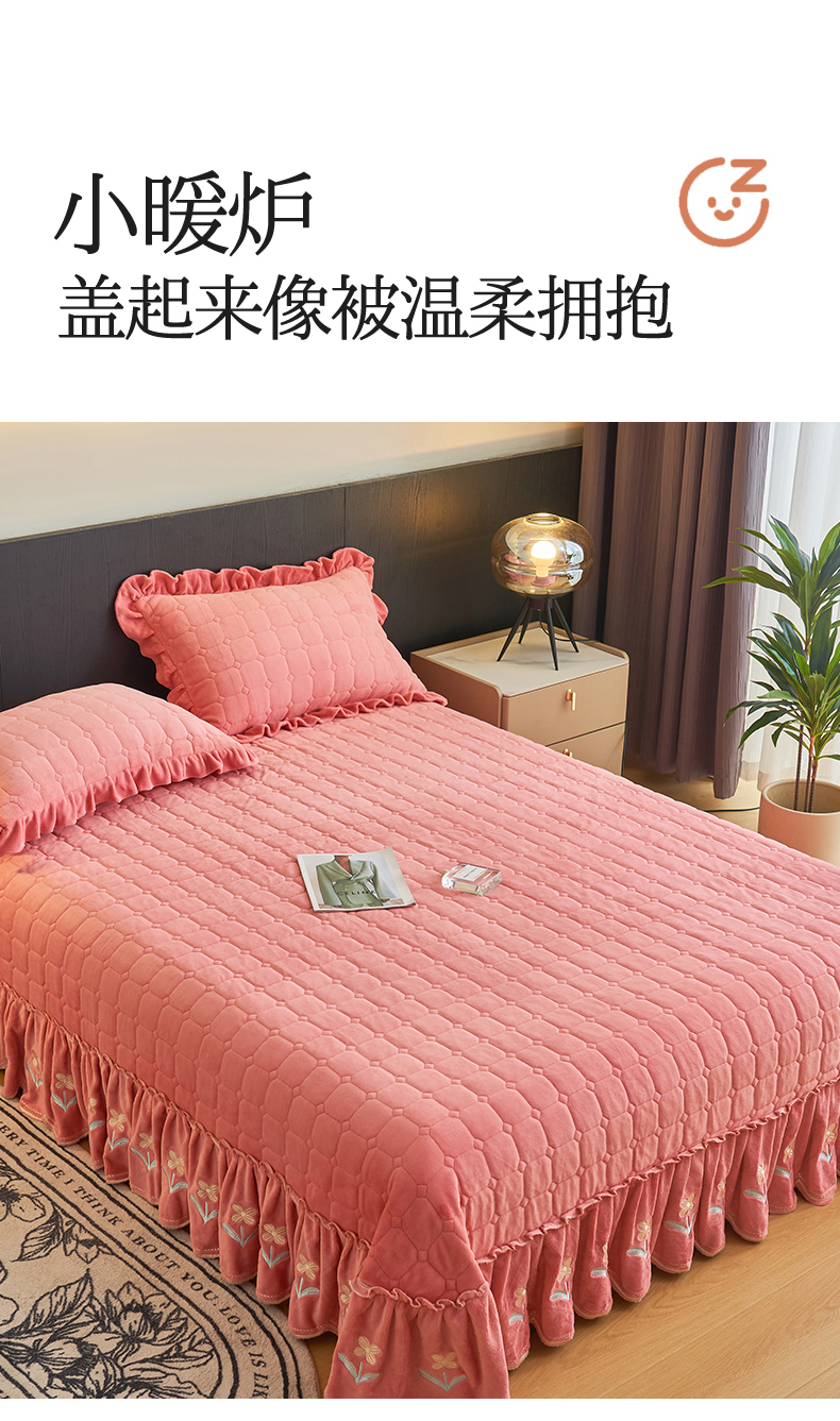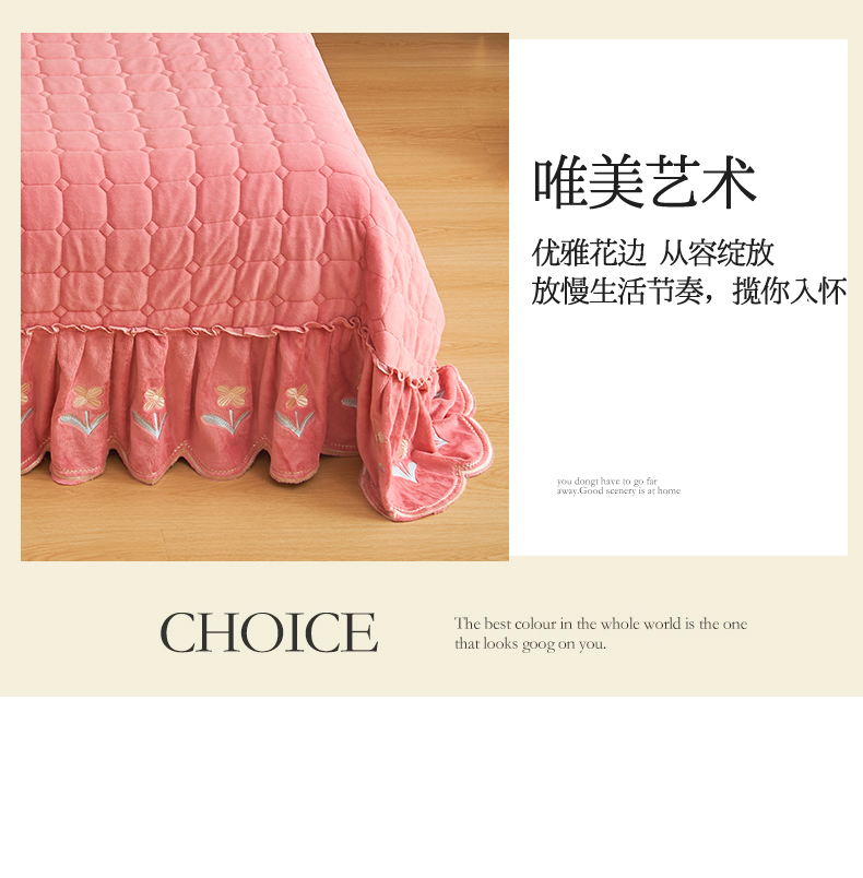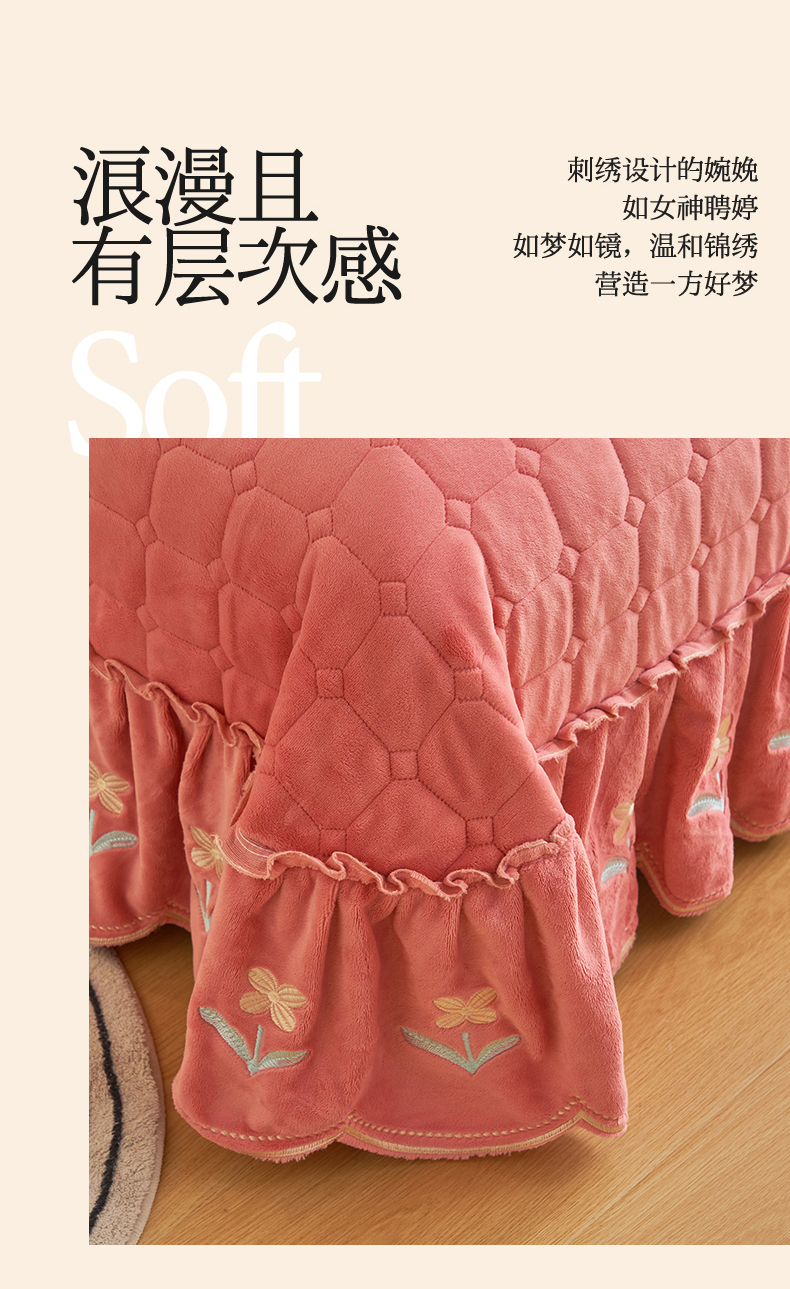 (总)恒爱 2022秋冬水晶绒翩翩花舞夹棉单床裙,大红色,豆沙红,橄榄绿,公主粉,桔色,咖啡色,孔雀绿,拉菲红,罗兰紫,玫红色,美人玉,米白色,米驼色,抹茶绿,浅灰色,紫色