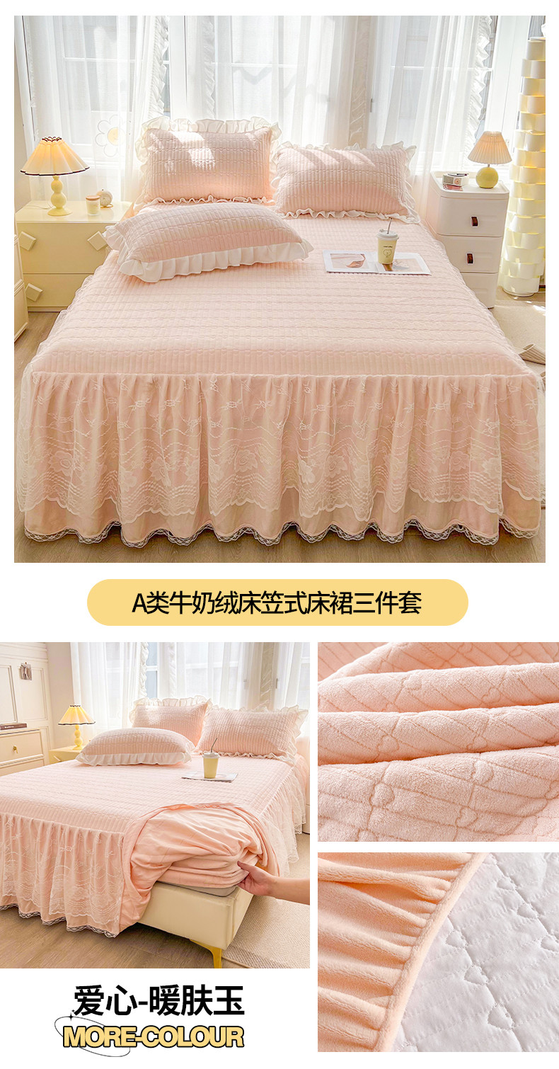 • 91家纺网 家纺一手货源 找家纺 宜凡家纺 2023新款牛奶绒印花夹棉被套床笠式床裙三件套 爱心-暖肤玉