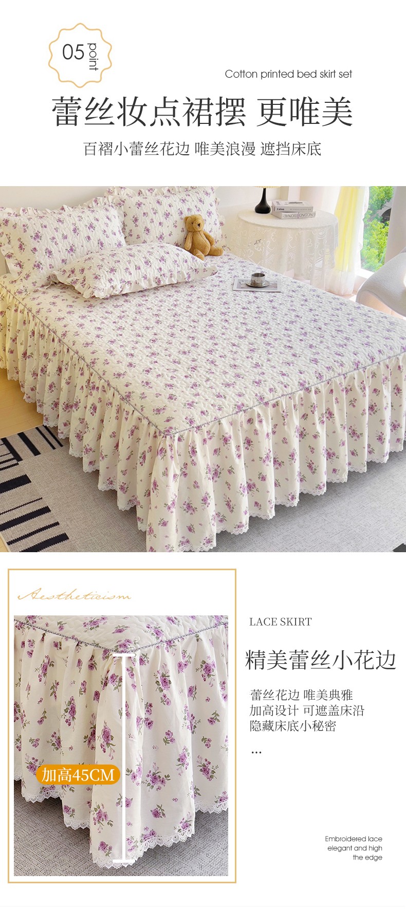 (总) 十个点 2025新款全棉纯棉蕾丝花边床裙,淡雅如梦,国色天香,红茶馆,花苒-紫,花小莱-粉,花小莱-紫,米朵熊,暮色花海,嫣语-兰,云梦星河