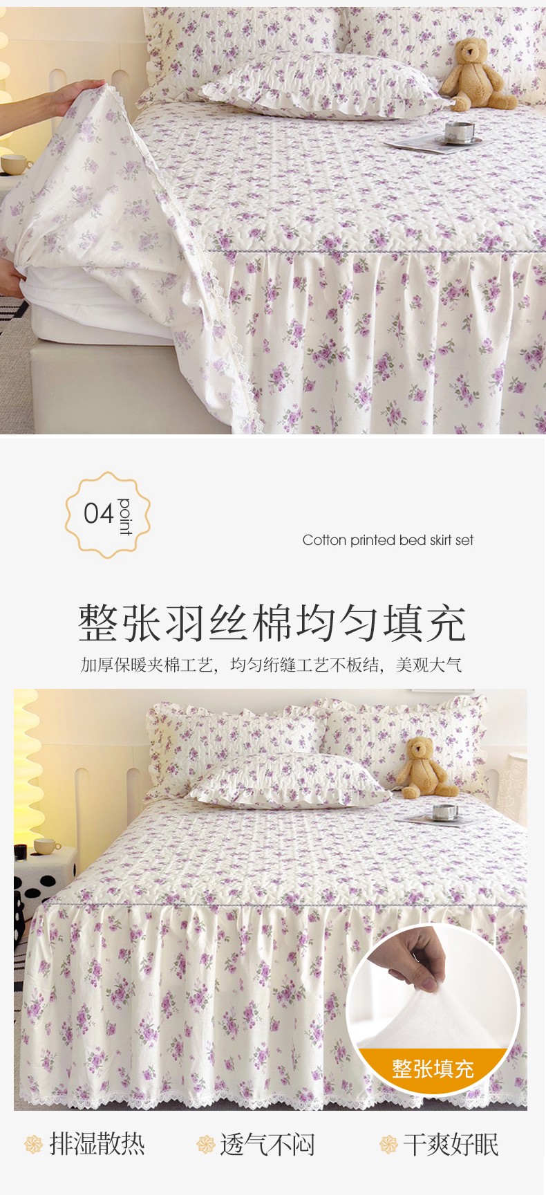 (总)十个点家纺 2025新款加厚磨毛木棉床裙三件套-绫罗系列,爱意萌萌,贝贝熊,格桑花,海棠花,蝴蝶兔,花千骨,米兰,木棉花,山茶花,同心结,心相印,心愿-米