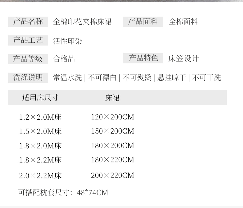 180cmx220cm单床裙