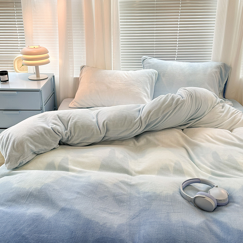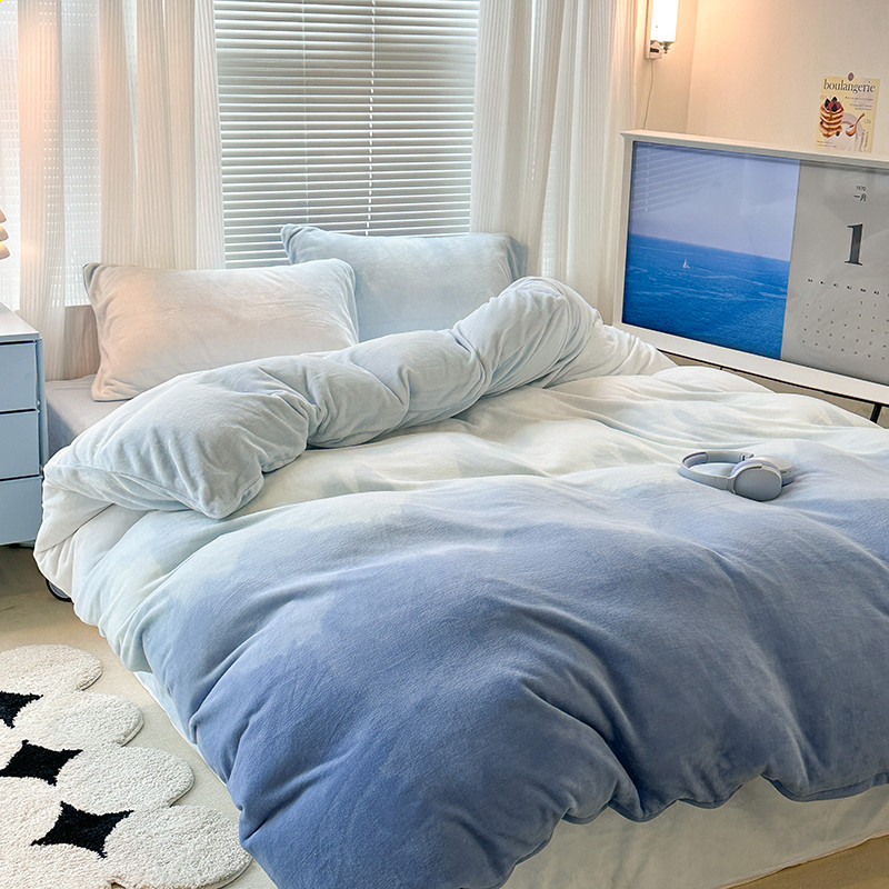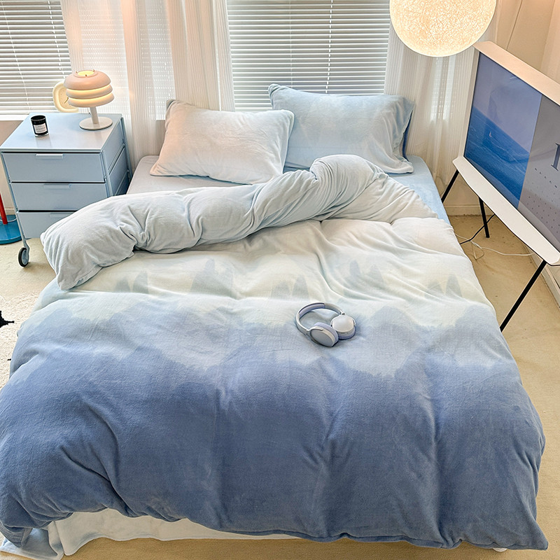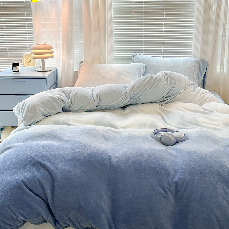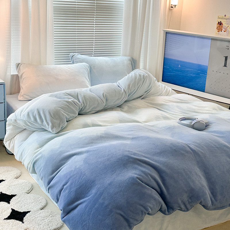 昔可家纺 2023新款柔软亲肤晕染牛奶绒四件套 那片蓝海