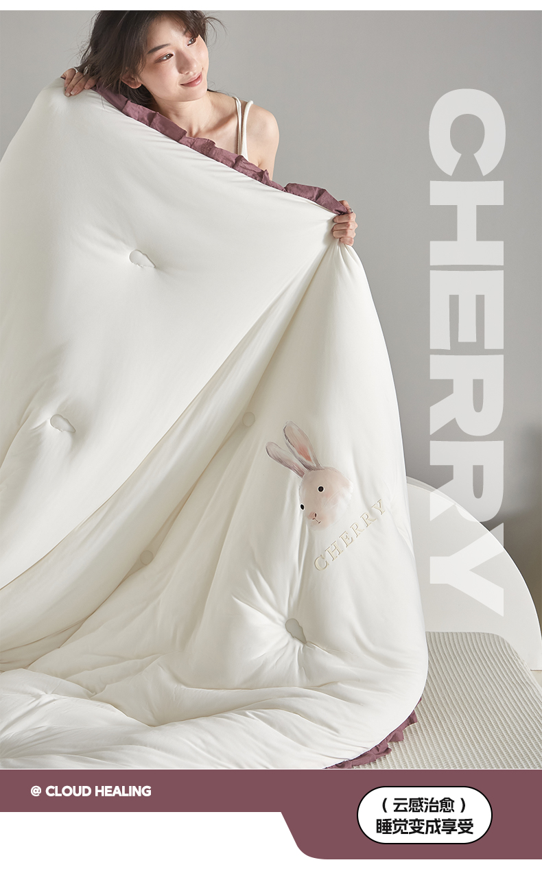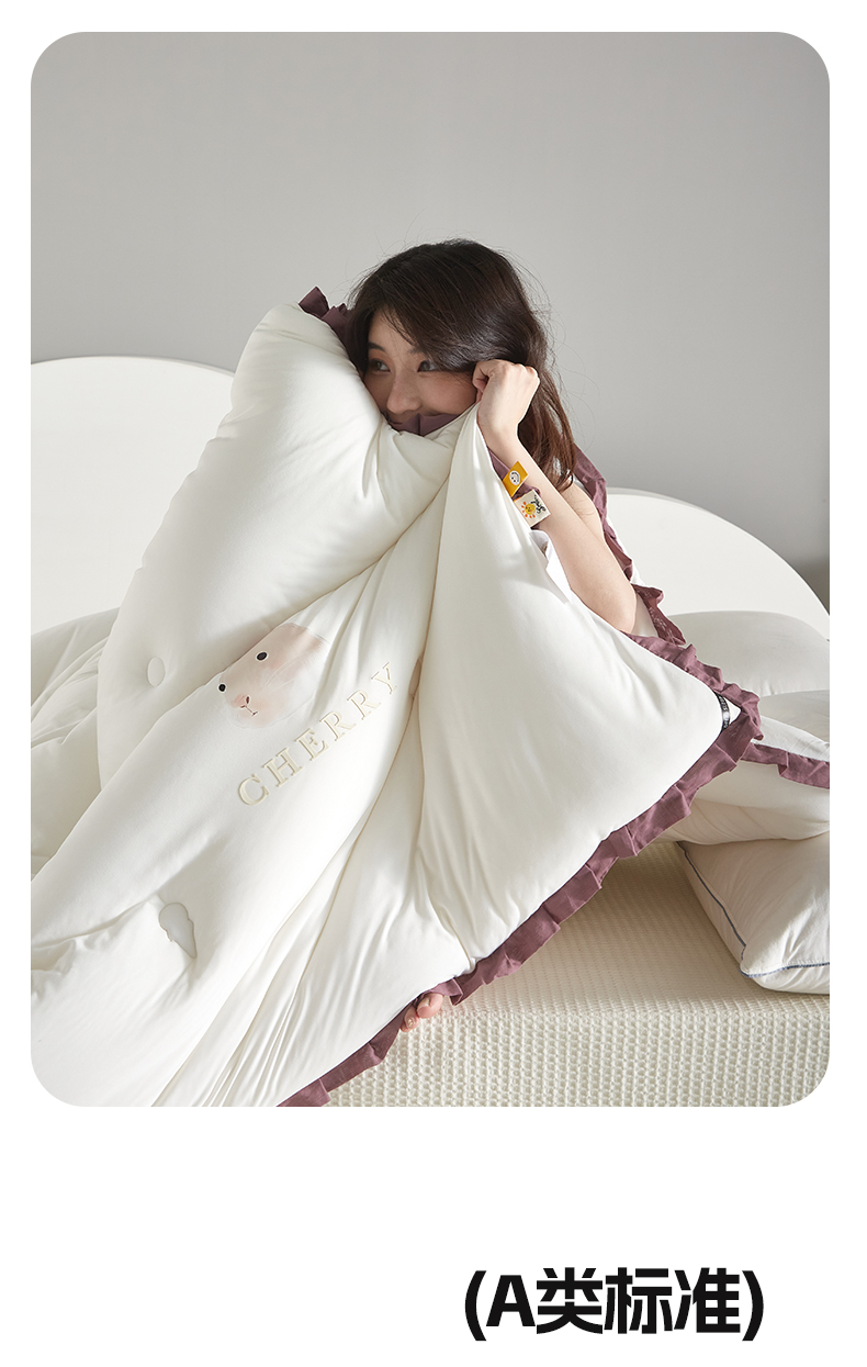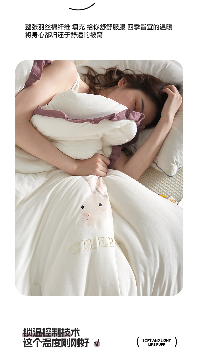 商品名称:莱福仕家纺 2023新款A类云感亲肤被 茶蕊兔(海盐白)