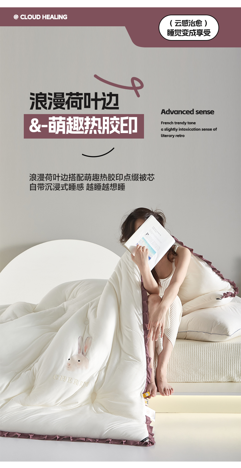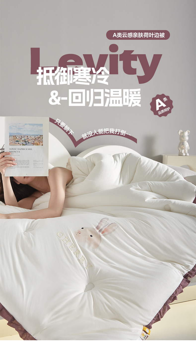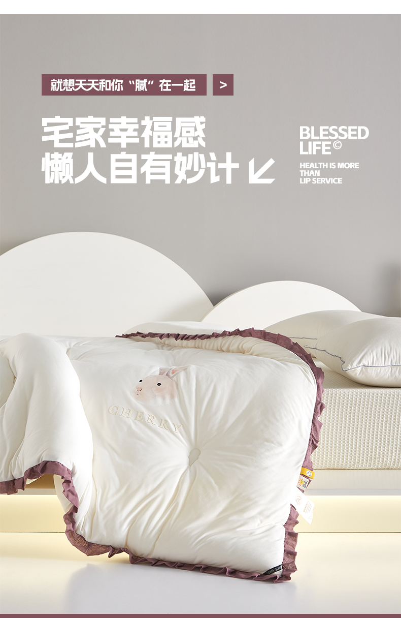 莱福仕家纺 2023新款A类云感亲肤被 茶蕊兔(海盐白)