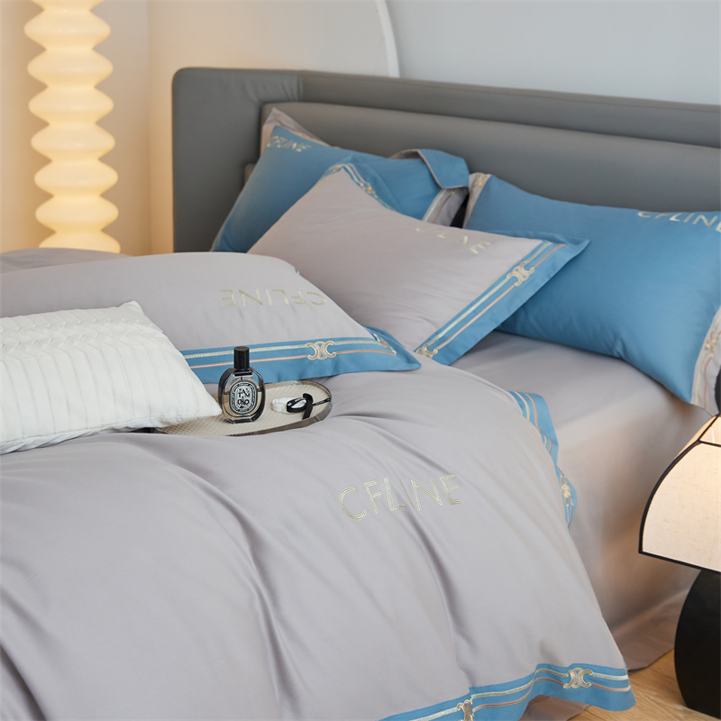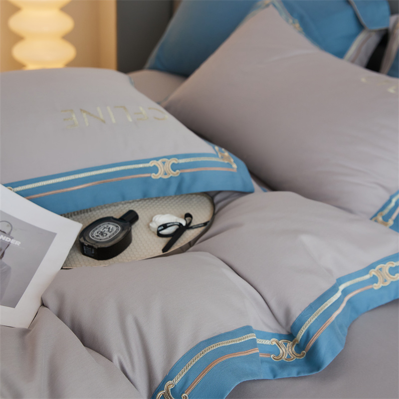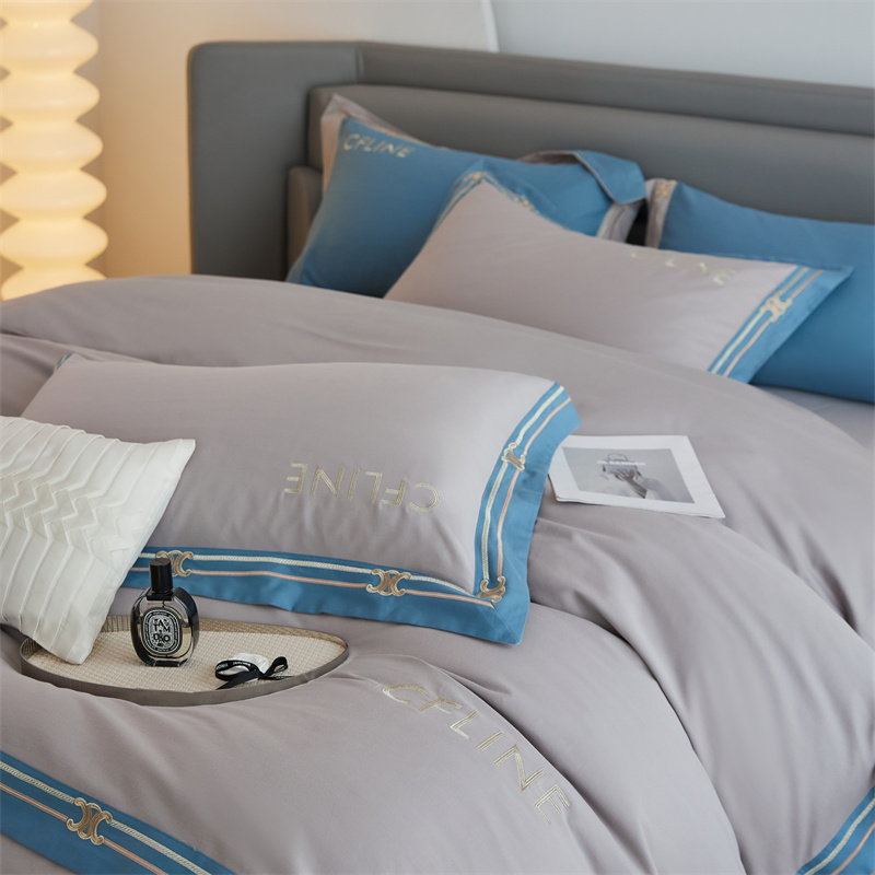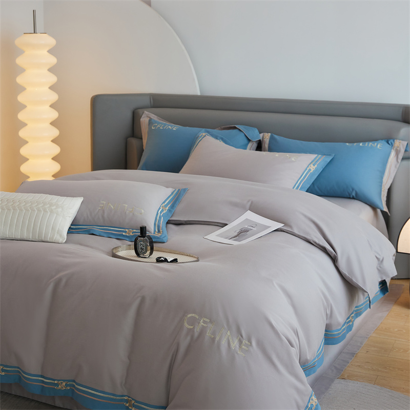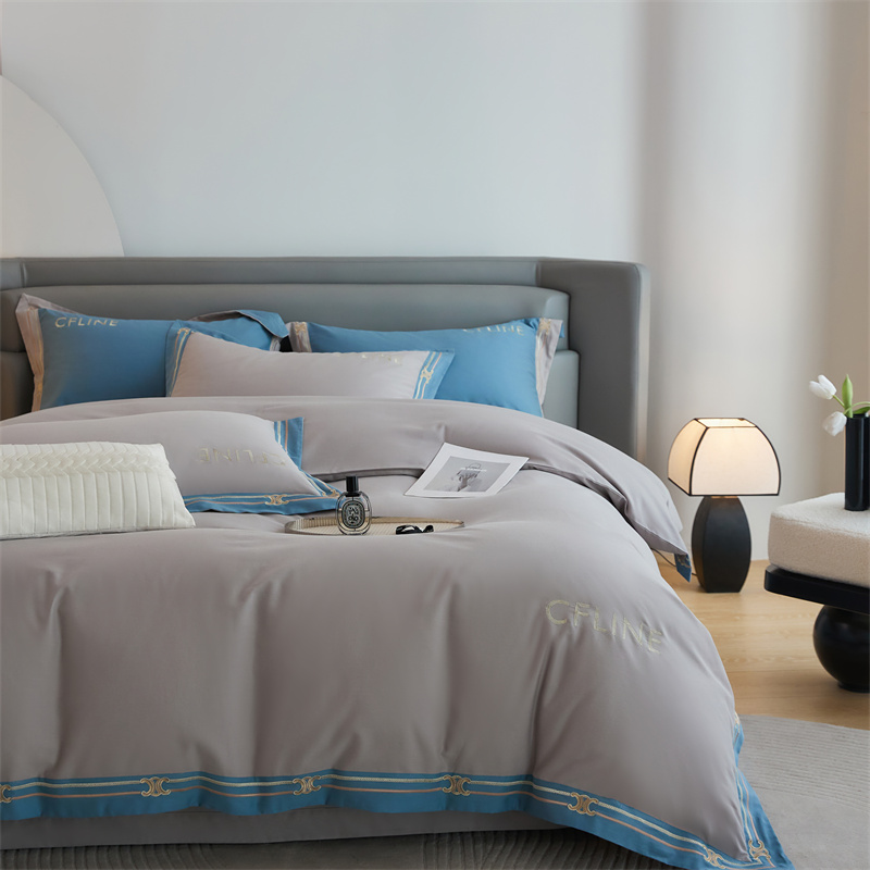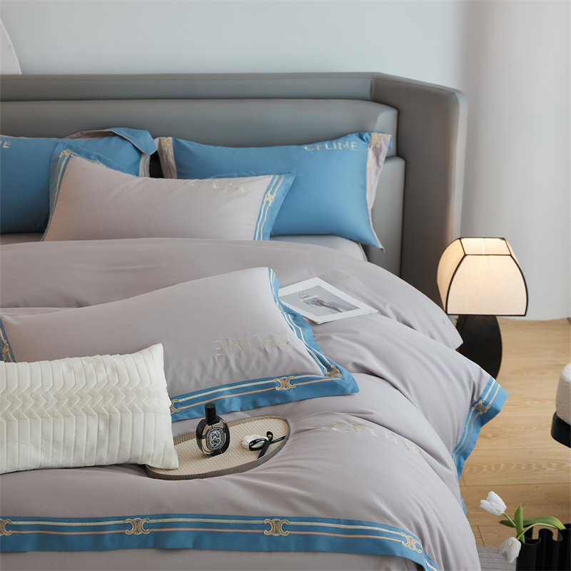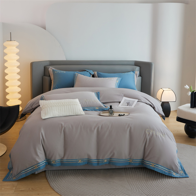 (总)惠居家 2023新款120支长绒棉刺绣四件套希曼系列,薄荷绿,宾利兰,豆沙,灰色