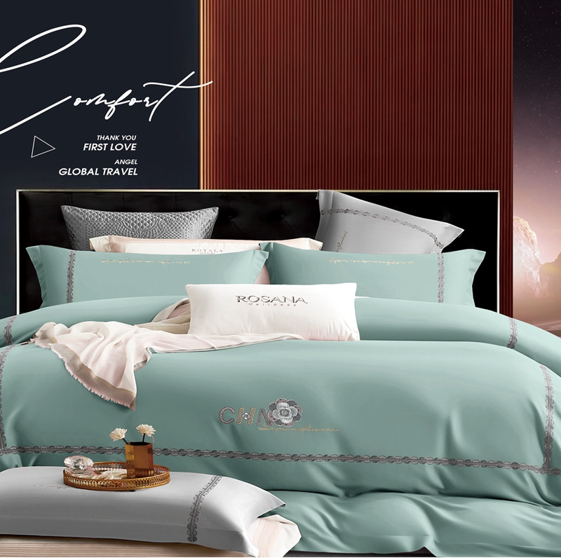 (总)惠居家 2023新款120支长绒棉刺绣四件套希曼系列,薄荷绿,宾利兰,豆沙,灰色