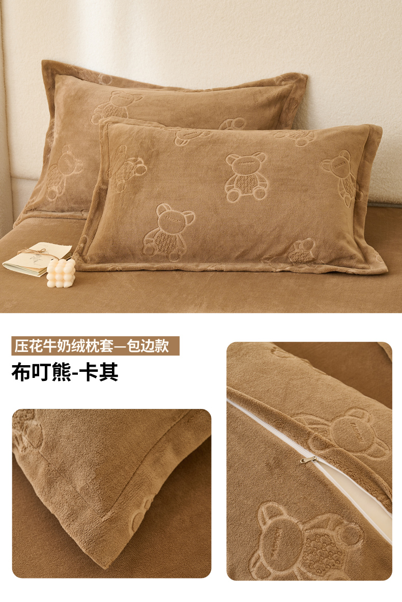 21度C 2023新款布叮熊云朵压花绒包边三角针枕套 布叮熊包边款卡其