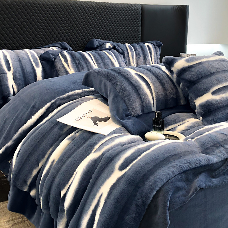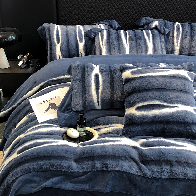 商品名称:秋冬A版500克丹麦貂B版240克全消光牛奶绒高端四件套-巴洛克 巴克洛 布鲁蓝