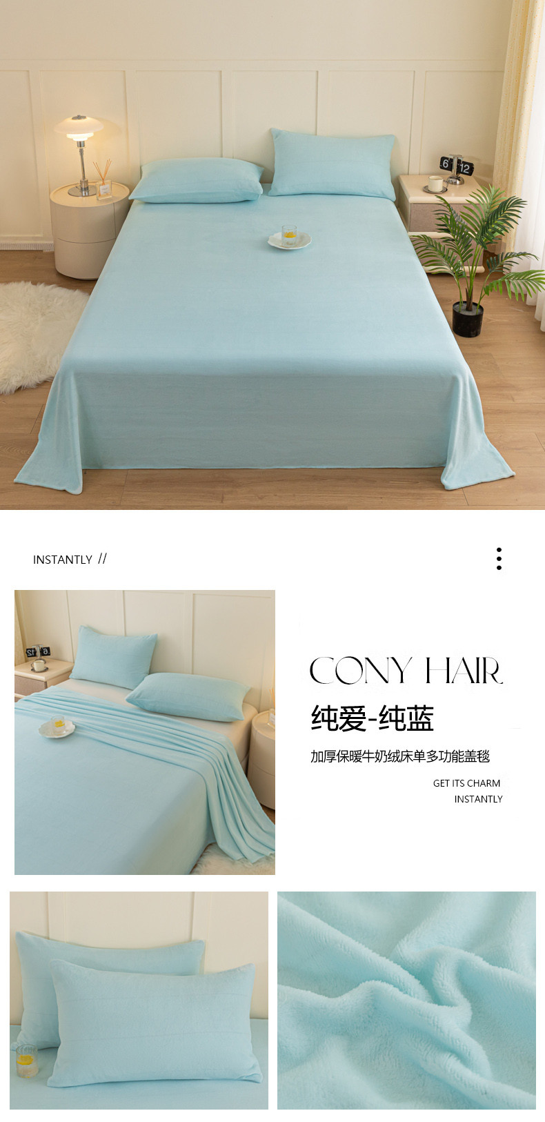 • 91家纺网 家纺一手货源 找家纺 慕澄家纺 2023新款纯色牛奶绒加厚保暖多功能床单盖毯 床单-纯蓝