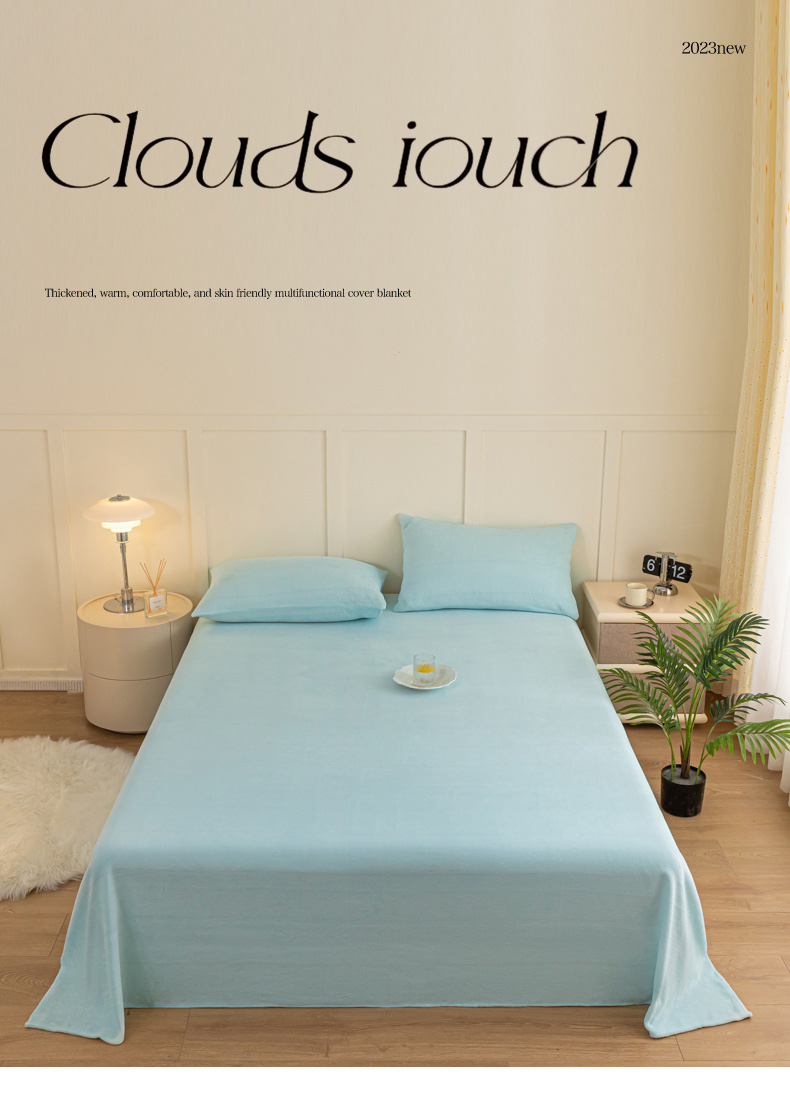 慕澄家纺 2023新款纯色牛奶绒加厚保暖多功能床单盖毯 床单-纯蓝