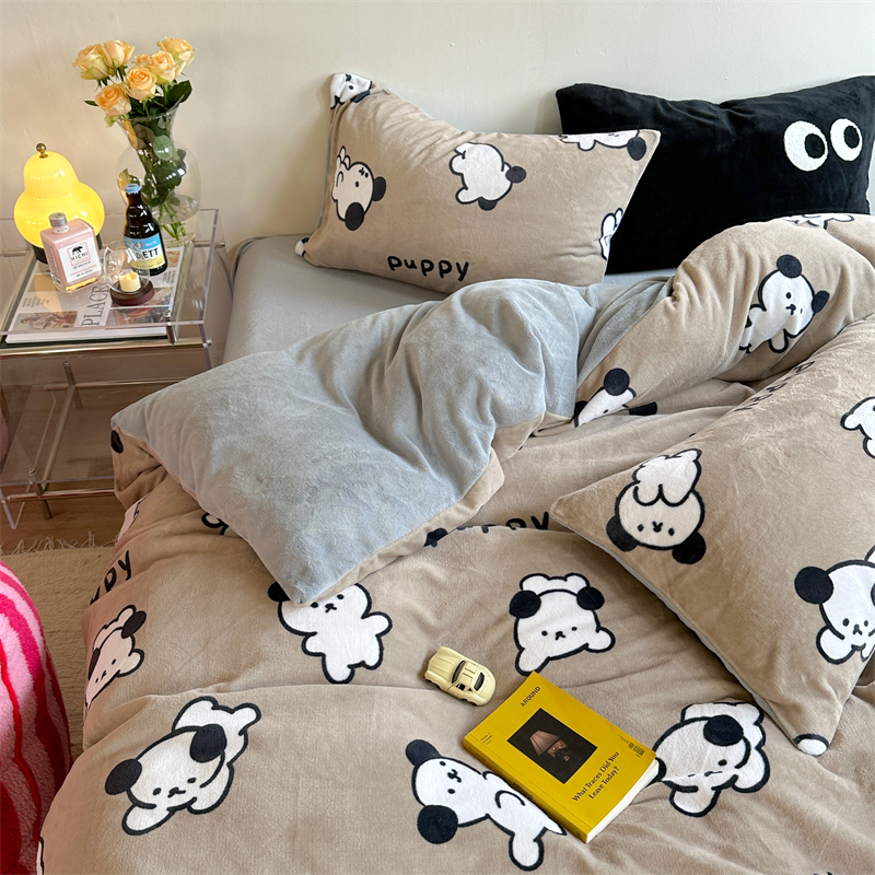 时年家纺 2023新款牛奶绒印花系列套件 小可爱风格 宠物