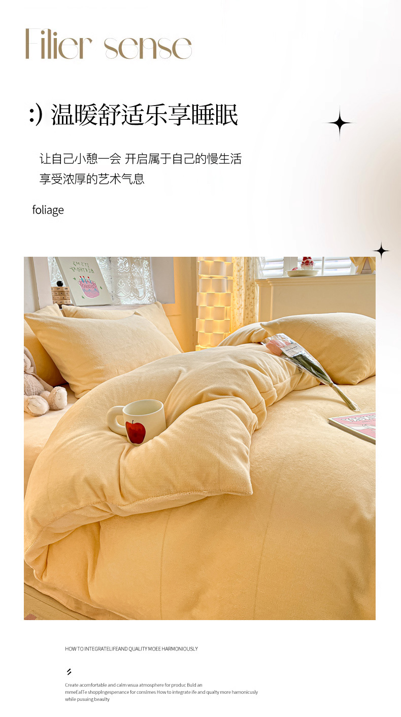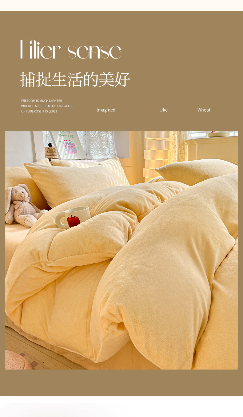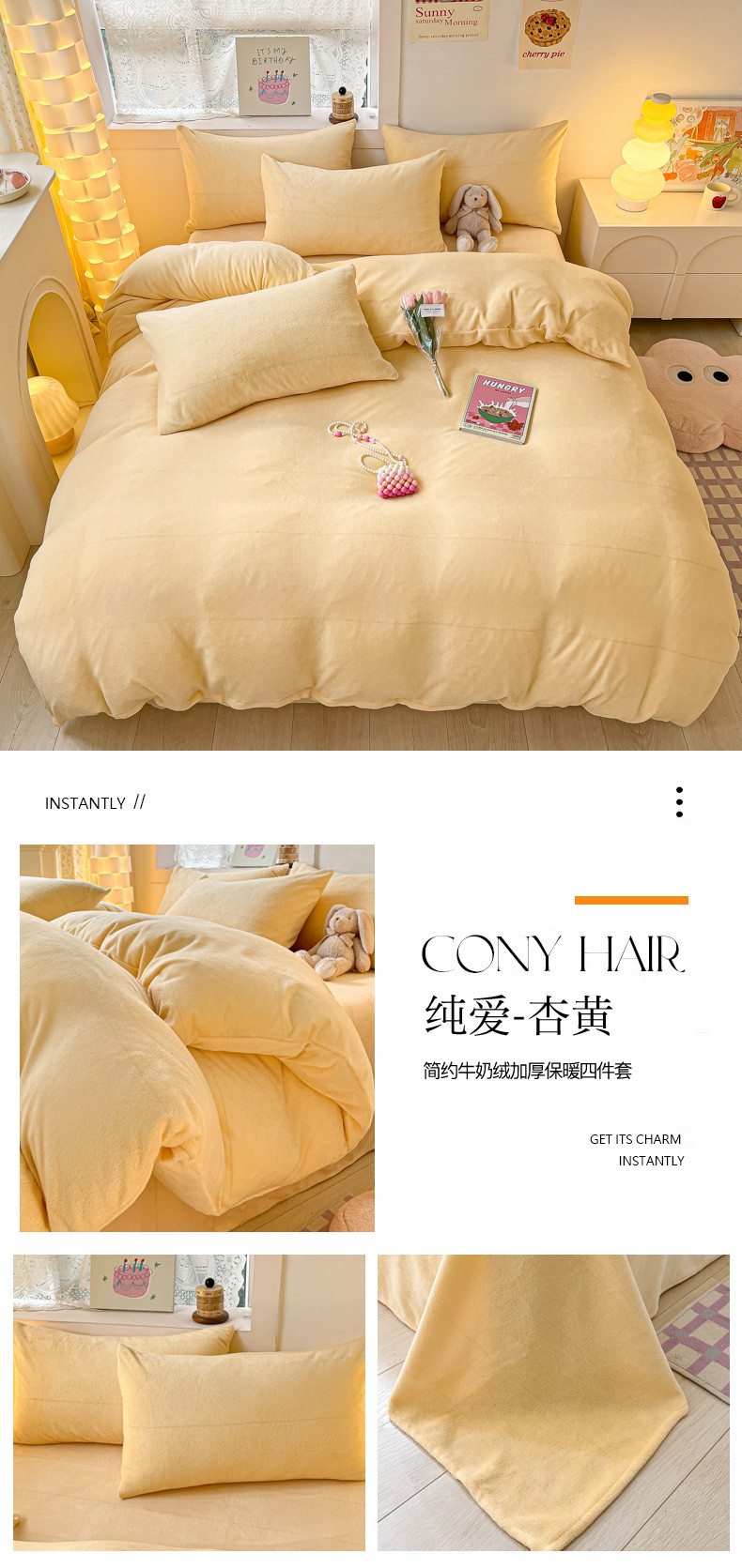 当前位置: 91家纺网 > 商品网购 > 床品套件 > 四件套 > 牛奶绒四件套 > 慕澄家纺 2023新款简约牛奶绒加厚保暖四件套-纯爱 纯爱-杏黄