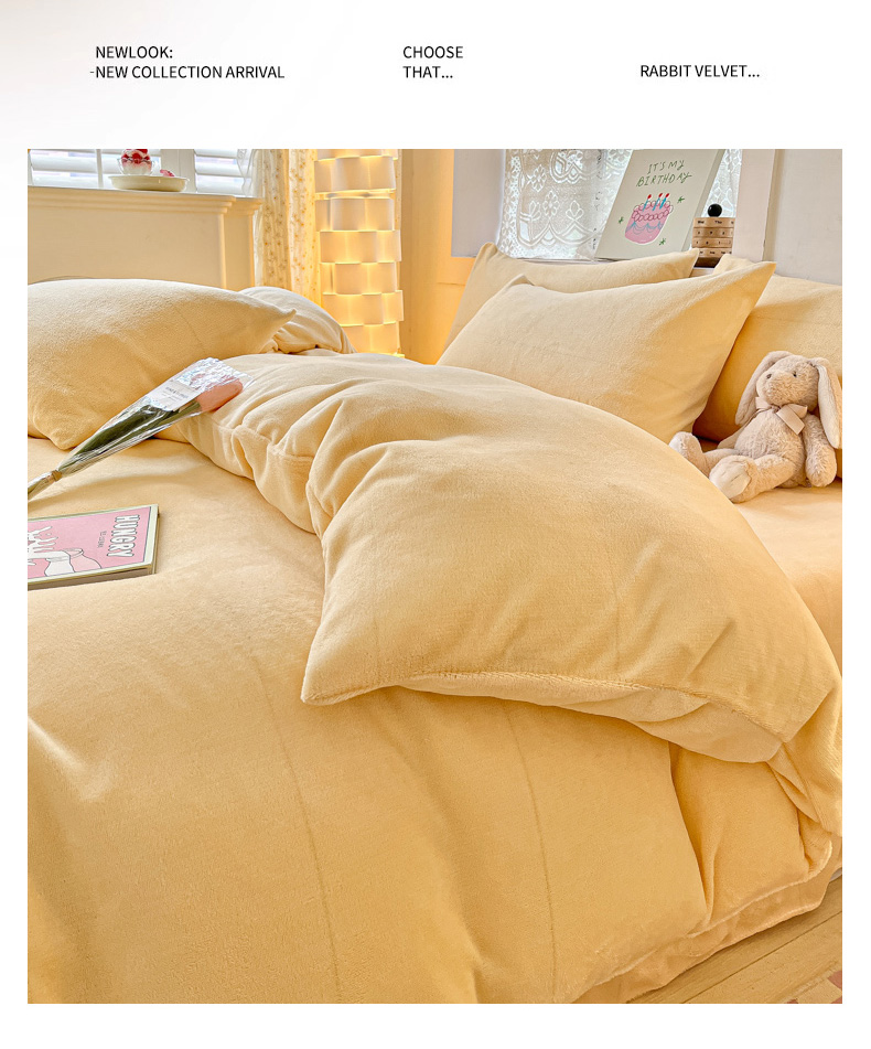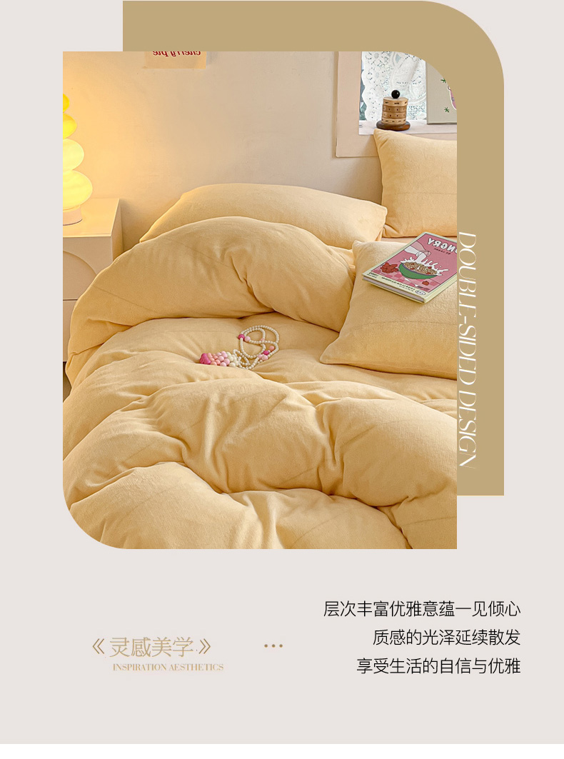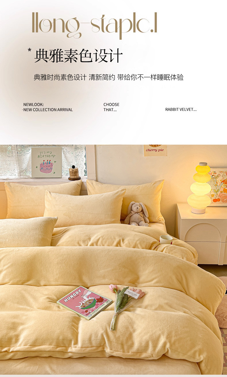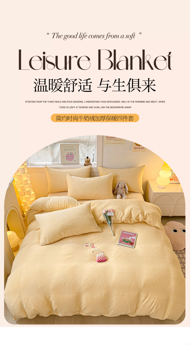 当前位置: 91家纺网 > 商品网购 > 床品套件 > 四件套 > 牛奶绒四件套 > 慕澄家纺 2023新款简约牛奶绒加厚保暖四件套-纯爱 纯爱-杏黄