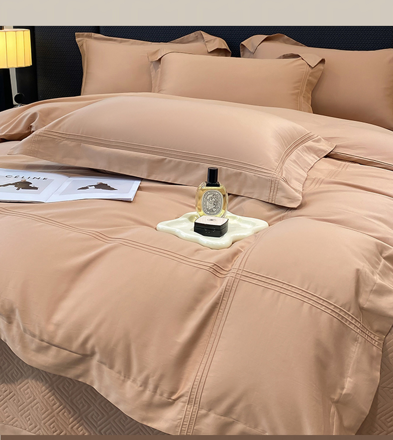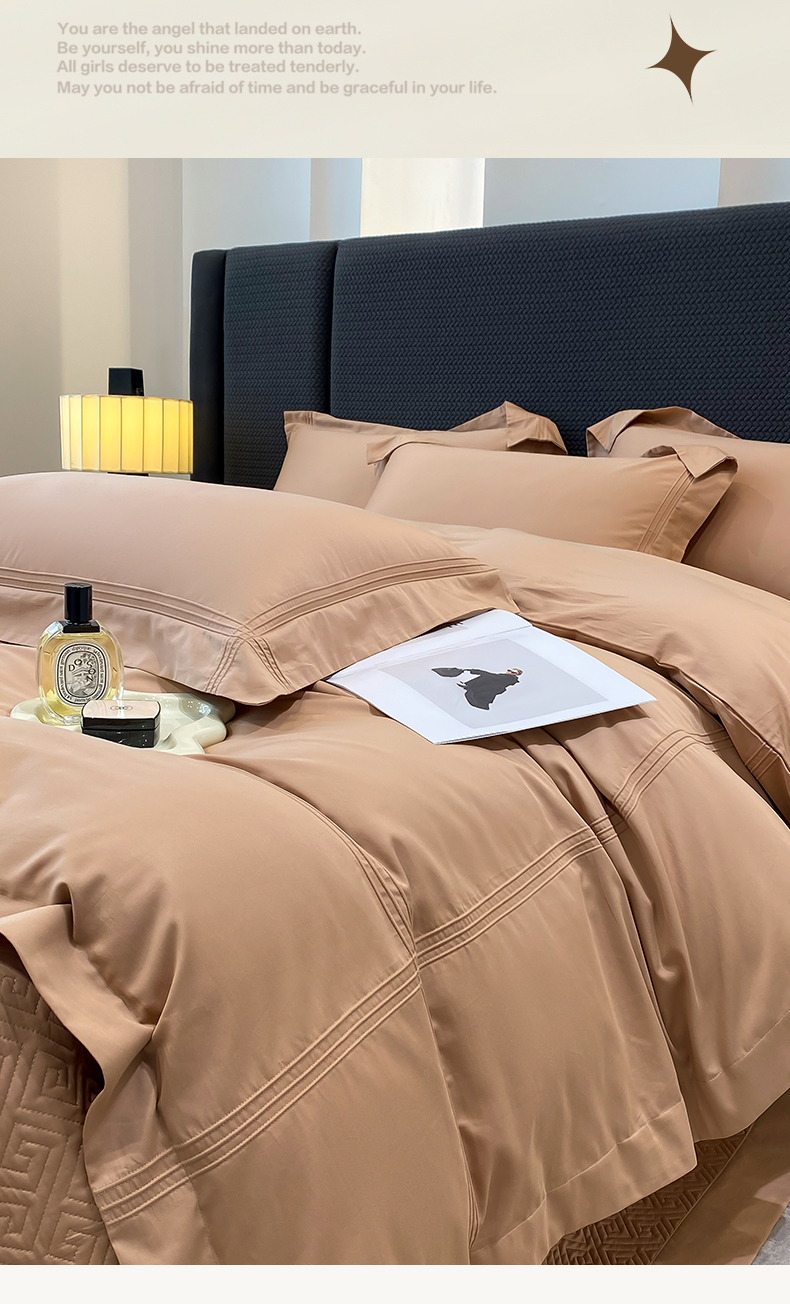 塔塔家居 2025新款60长绒棉床盖四件套 赠送包装 卡其棕