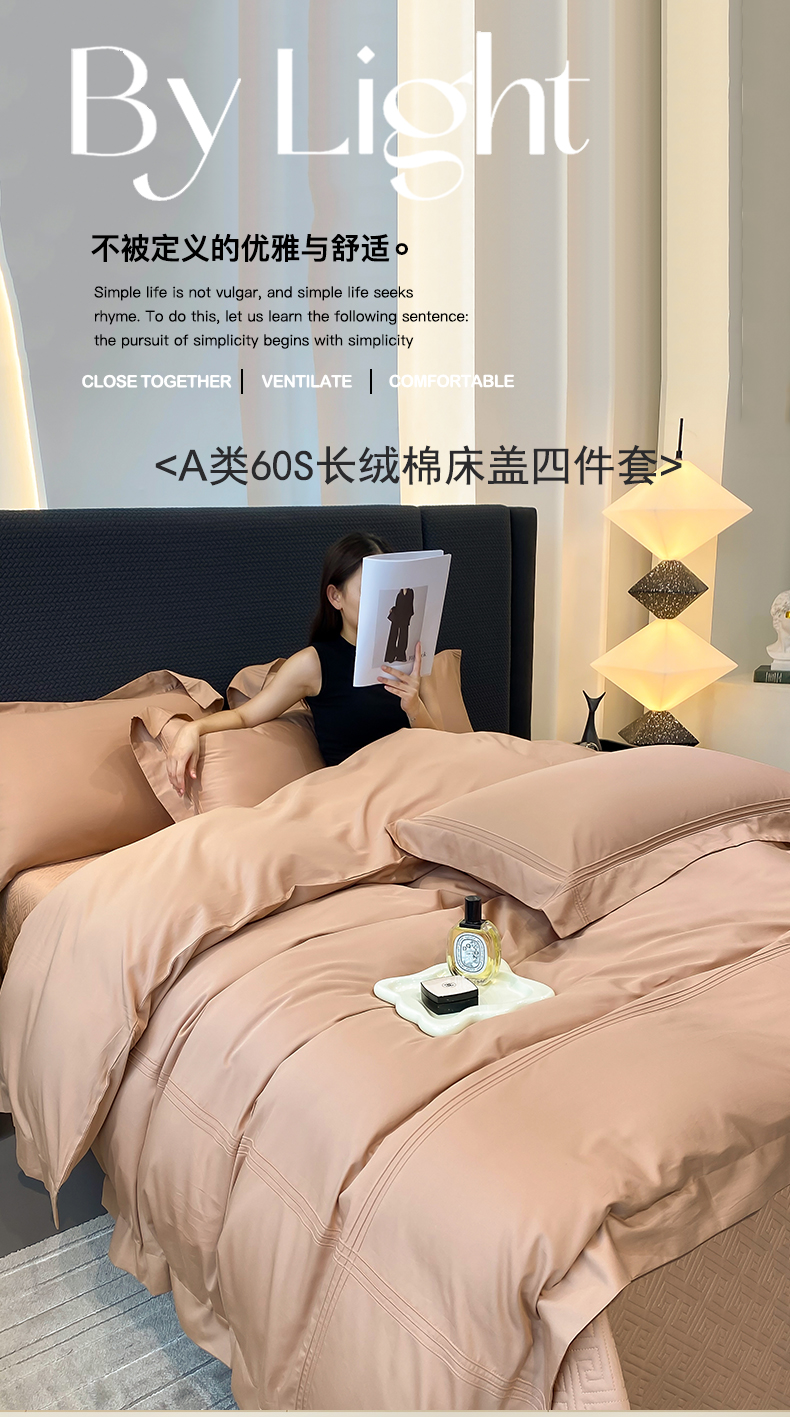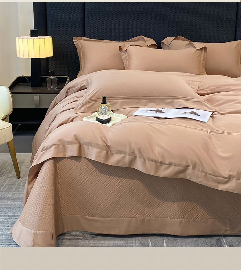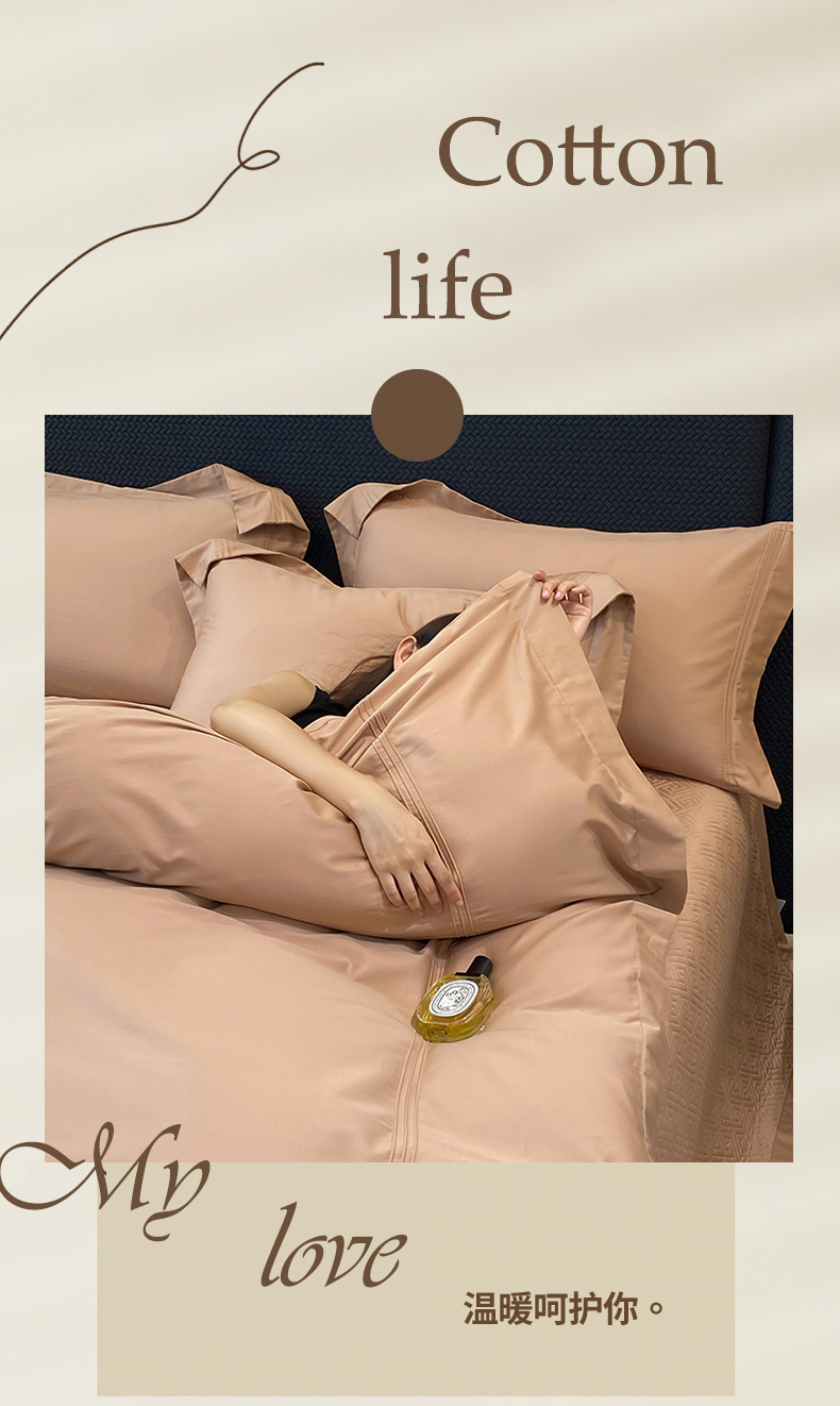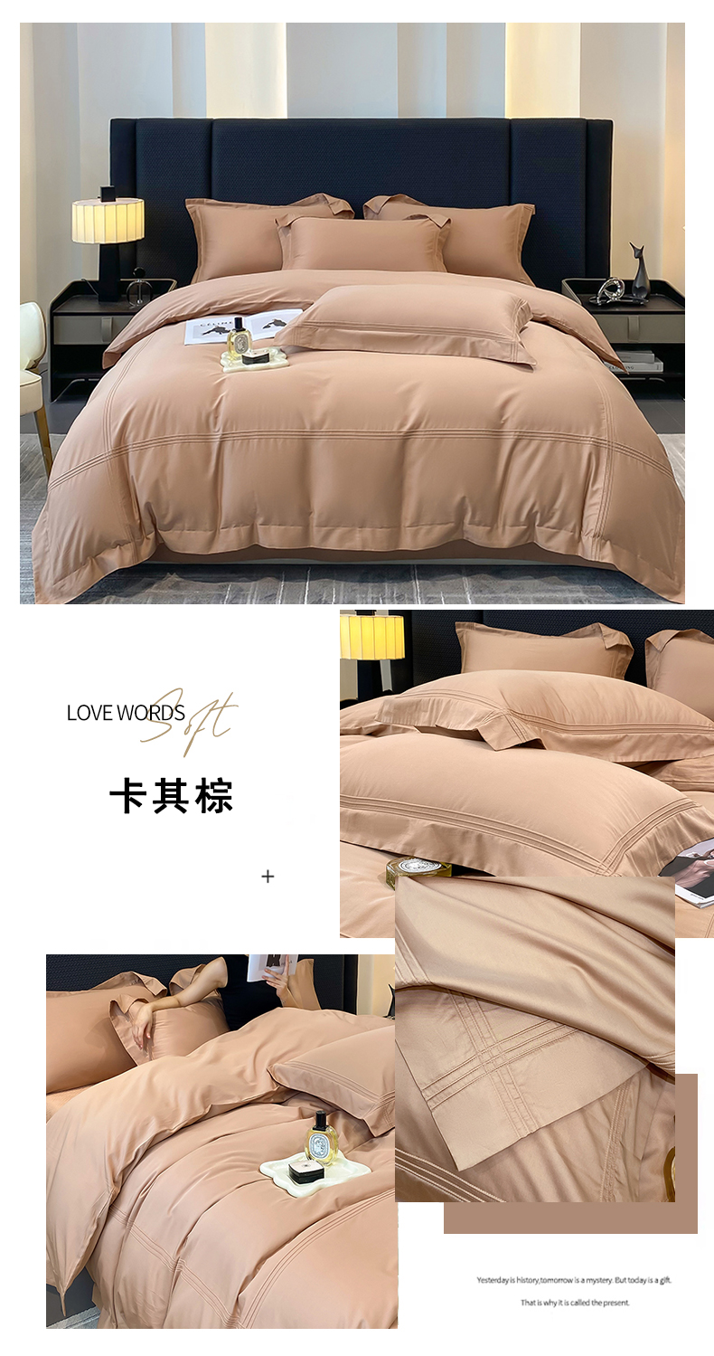 商品名称:塔塔家居 2025新款60长绒棉床盖四件套 赠送包装 卡其棕