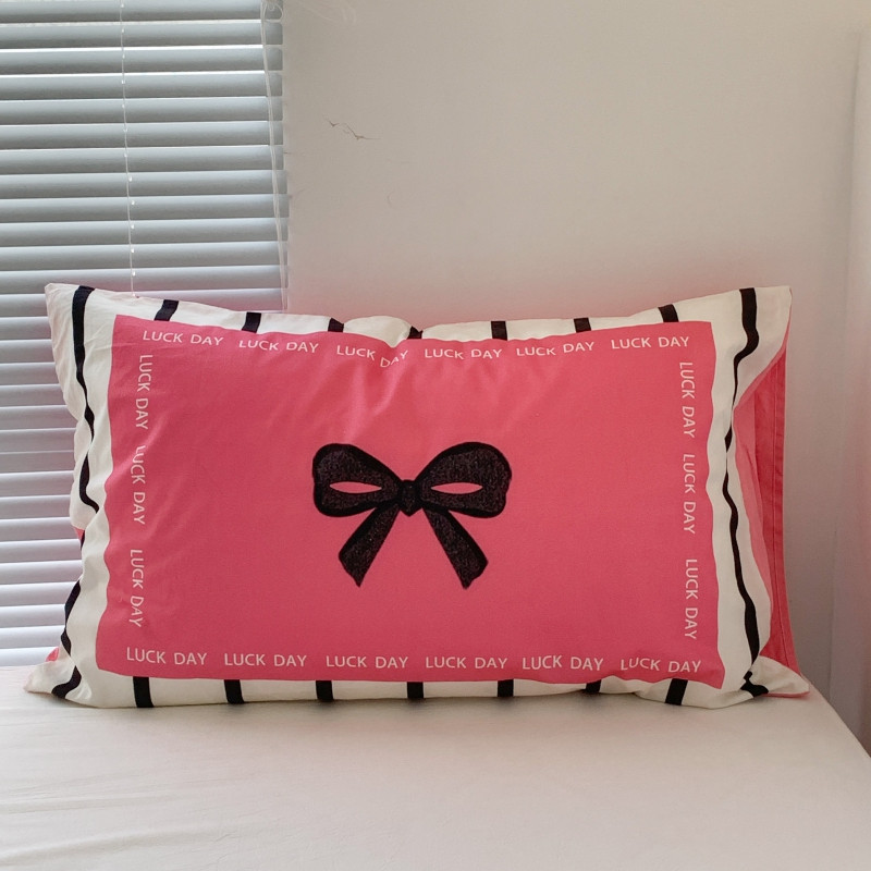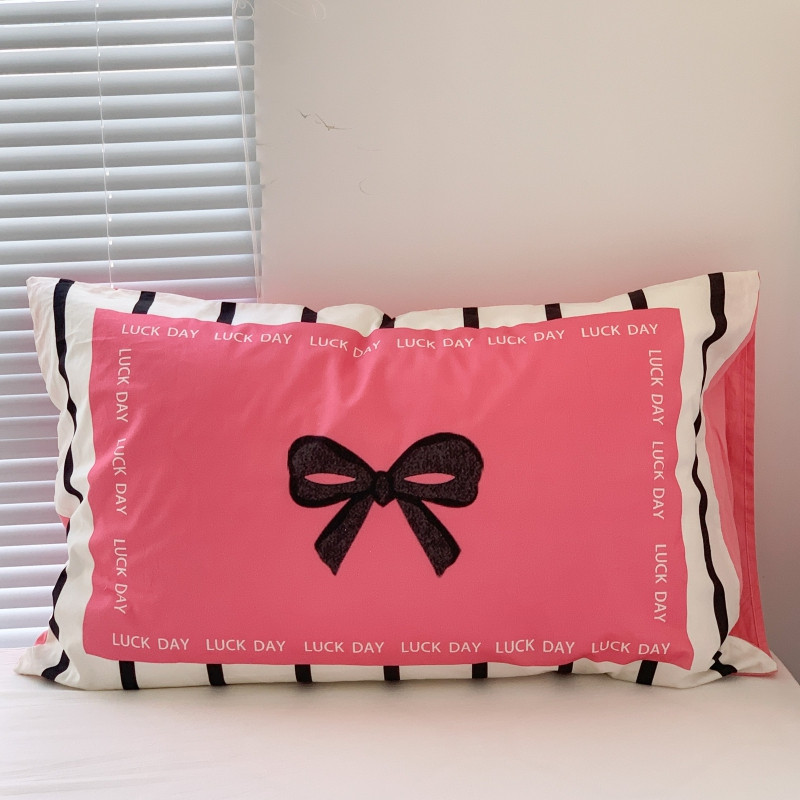 昔可 2023新款全棉大版数码印花单枕套 条纹蝴蝶结