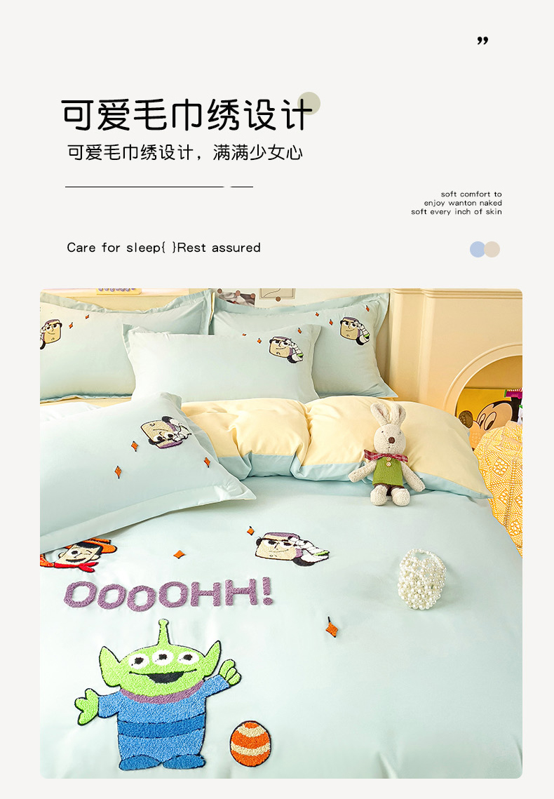 当前位置: 91家纺网 > 商品网购 > 床品套件 > 四件套 > 普通磨毛四件套 > (总)娜娜 2023新款水洗磨毛毛巾绣四件套-胡迪和巴斯