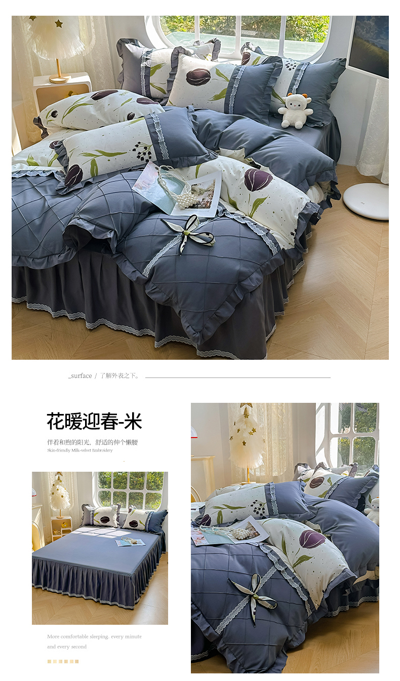 (总)金米诺 2024新款韩版花边水洗棉泡泡纱四件套公主条四件套,条纹-浅灰,条纹-浅咖,条纹-清新绿,条纹-樱花粉,条纹-优雅黄,条纹-优雅紫,褶皱-奶白,褶皱-浅粉,褶皱-浅黄,褶皱-浅蓝,褶皱-浅绿,褶皱-浅紫