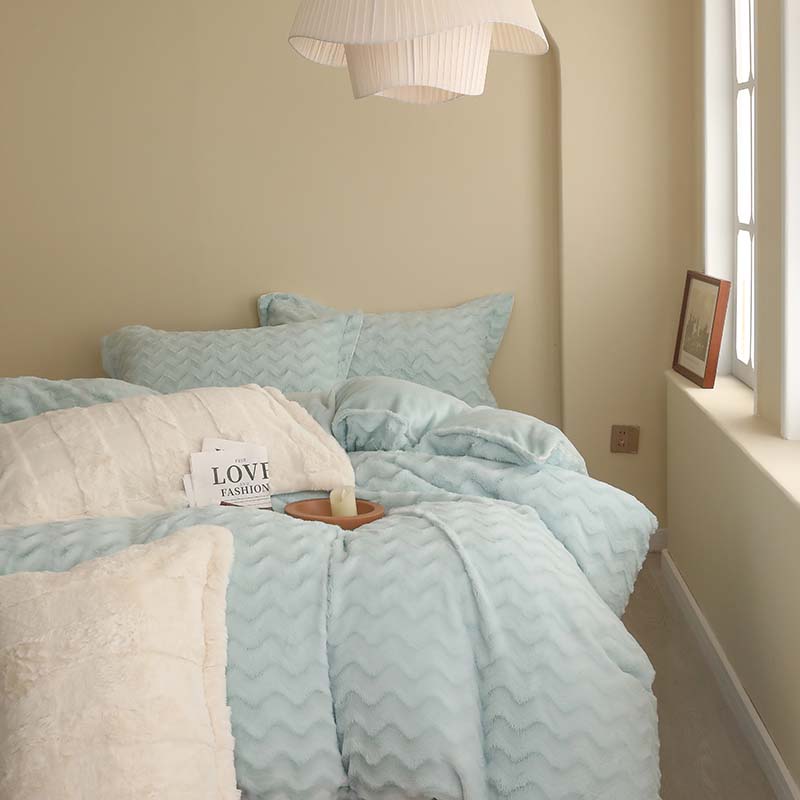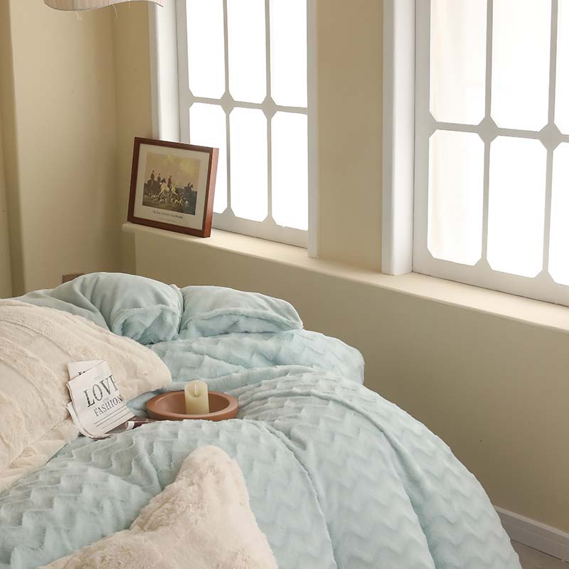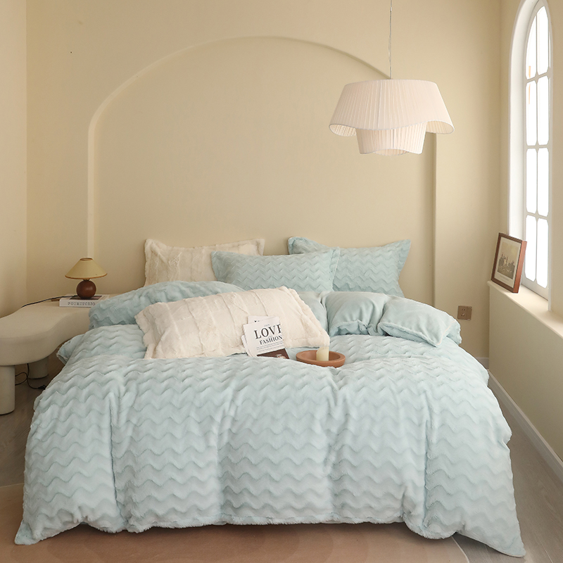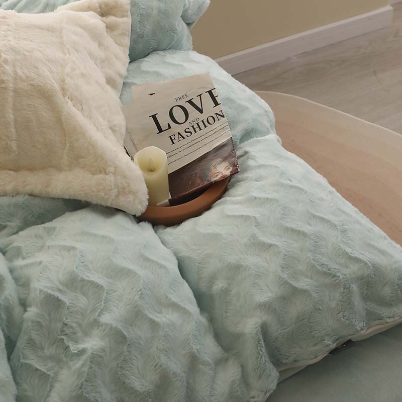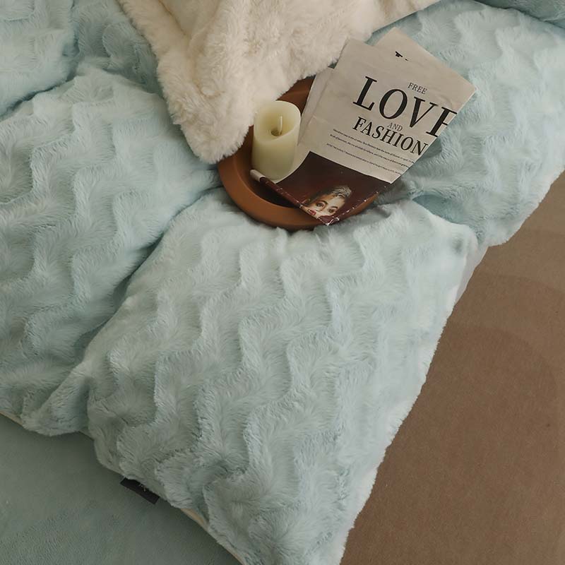 商品名称:橘滋 2023新款A版360克皮草绒B版高克重牛奶绒四件套 吉安娜-北欧蓝