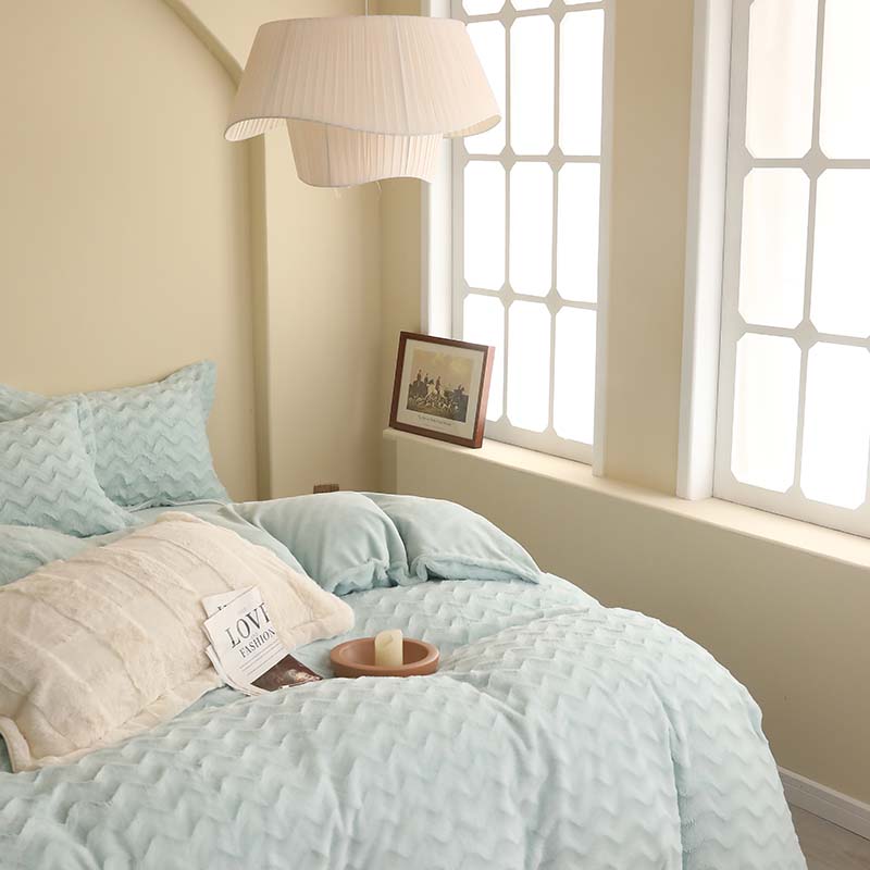 橘滋 2023新款A版360克皮草绒B版高克重牛奶绒四件套 吉安娜-北欧蓝