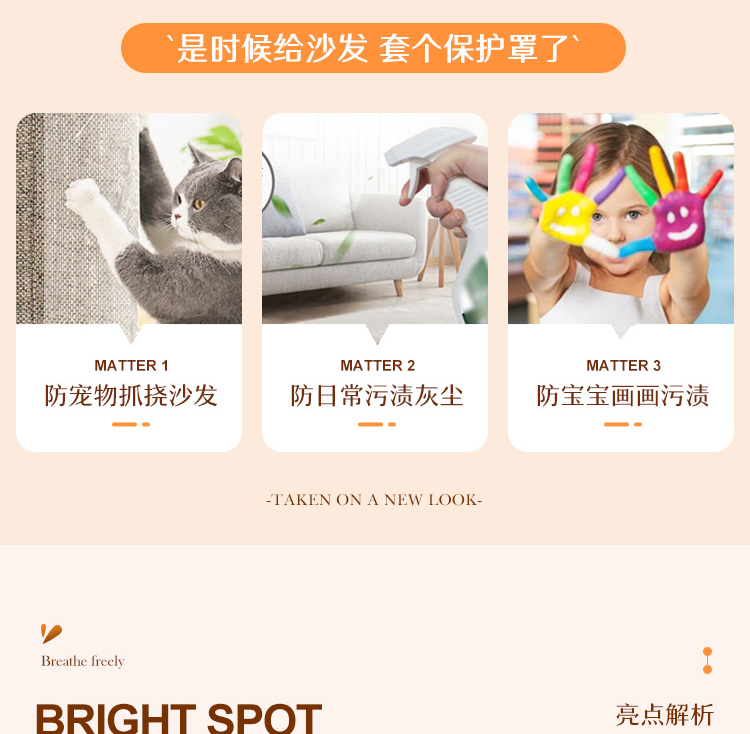 (总)丝绮鹿 2025新款仿麻雪尼尔系列沙发套(素栩)-大三人,黑巧灰,奶油杏,秋叶黄,松枝绿,银河灰