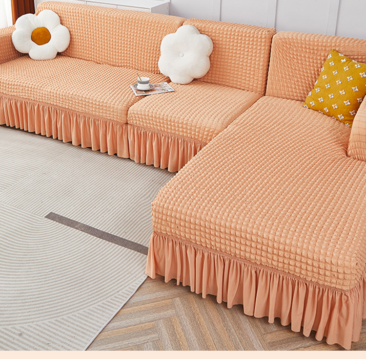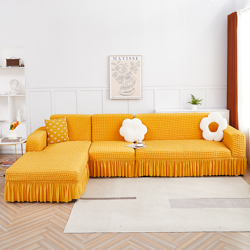 丝绮鹿 2023新款爆米花裙边贵妃沙发套 姜黄