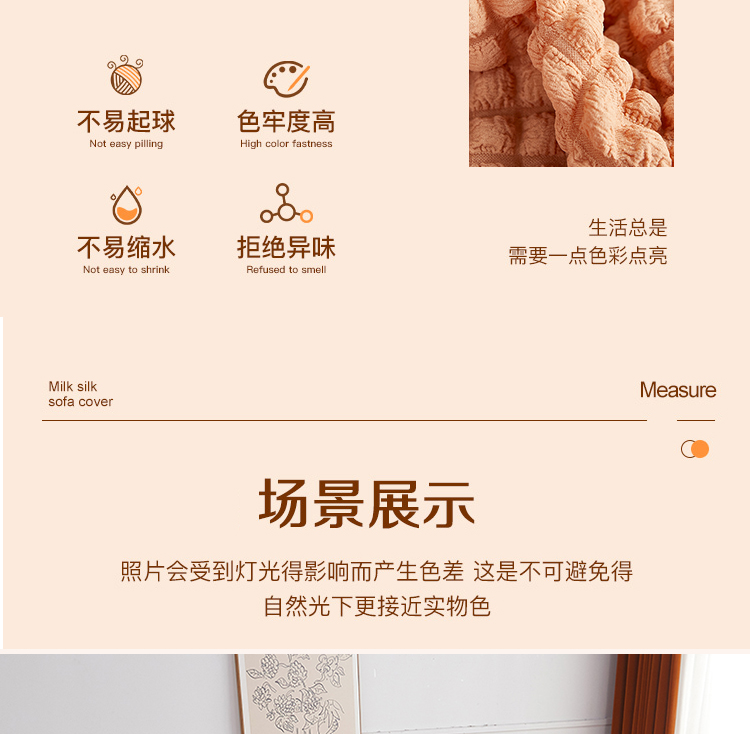 (总)丝绮鹿 2025新款仿麻雪尼尔松紧款沙发套-流景(贵妃图),流景-薄雾黄,流景-宝石绿,流景-黑棕色,流景-落日橘,流景-星空灰