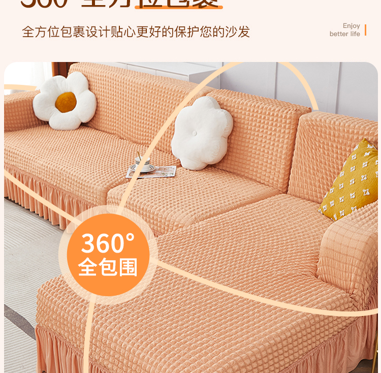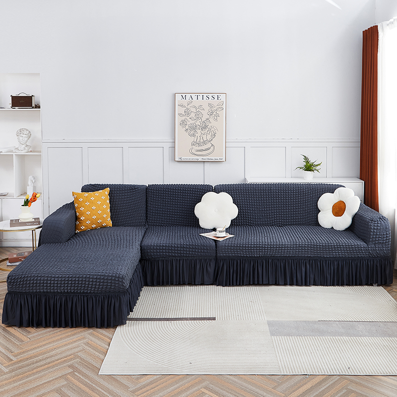 丝绮鹿 2023新款爆米花裙边贵妃沙发套 碳灰