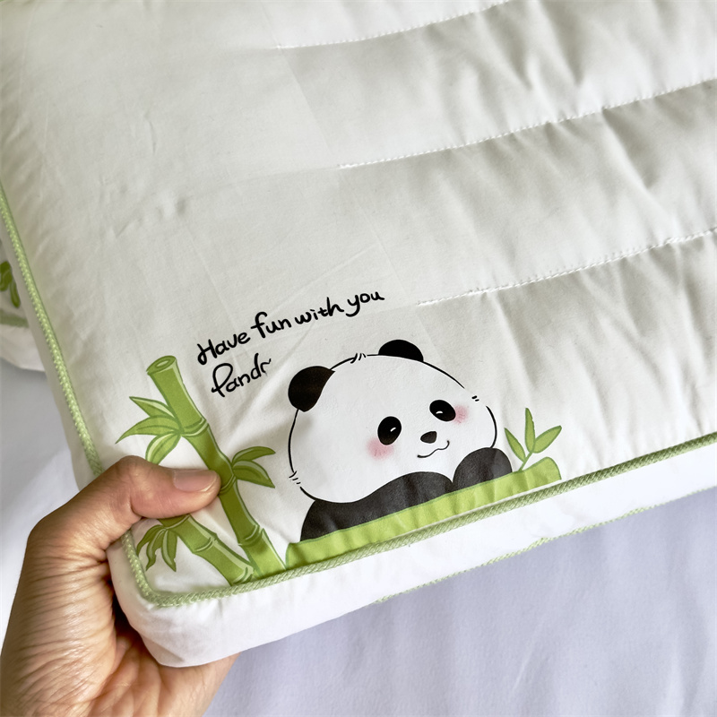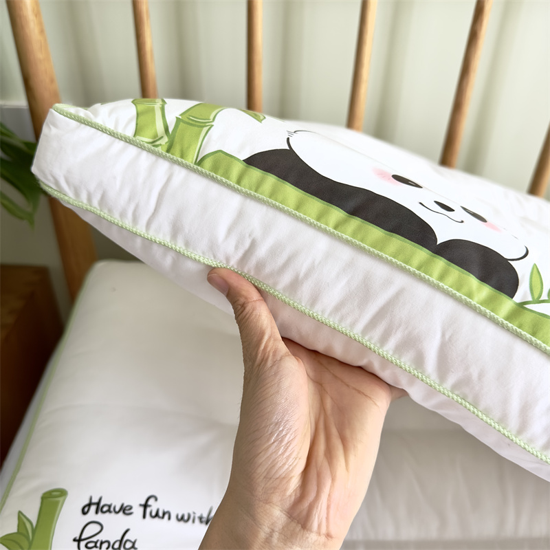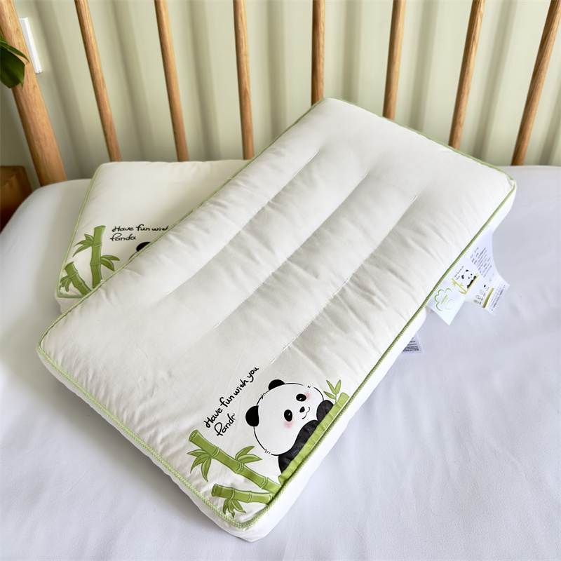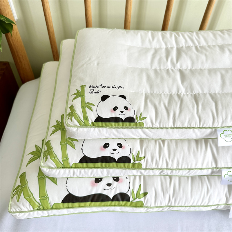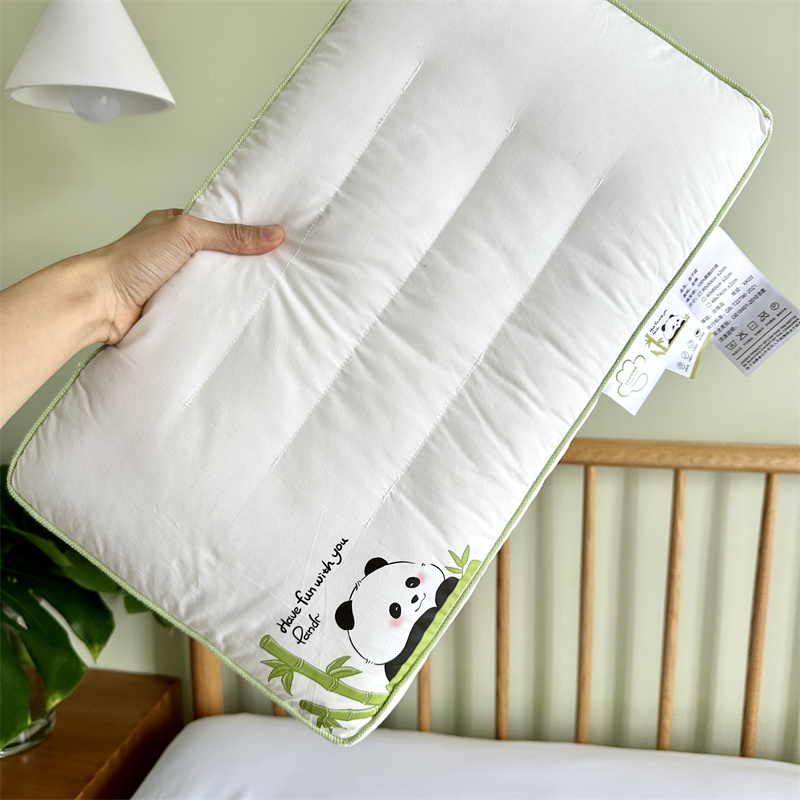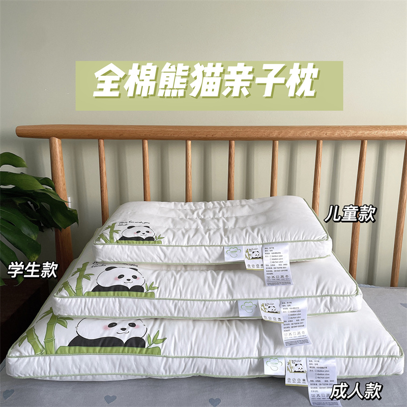 昕科 纯棉熊猫卡通儿童低枕头学生宿舍枕芯成人枕亲子款护颈枕