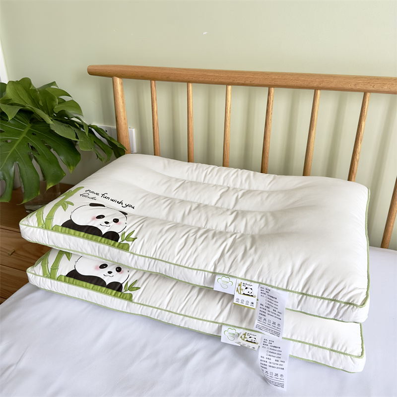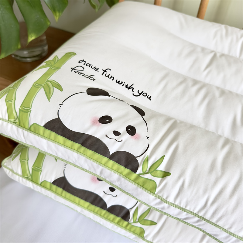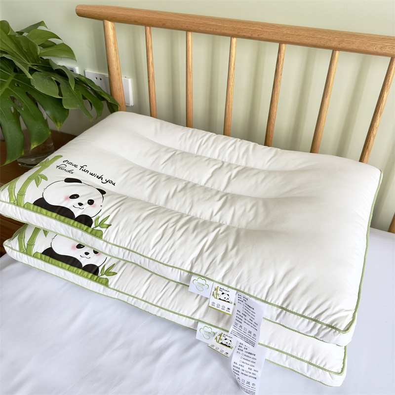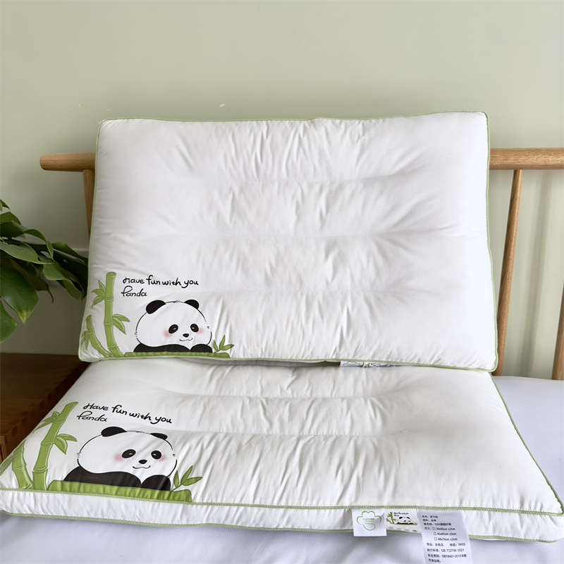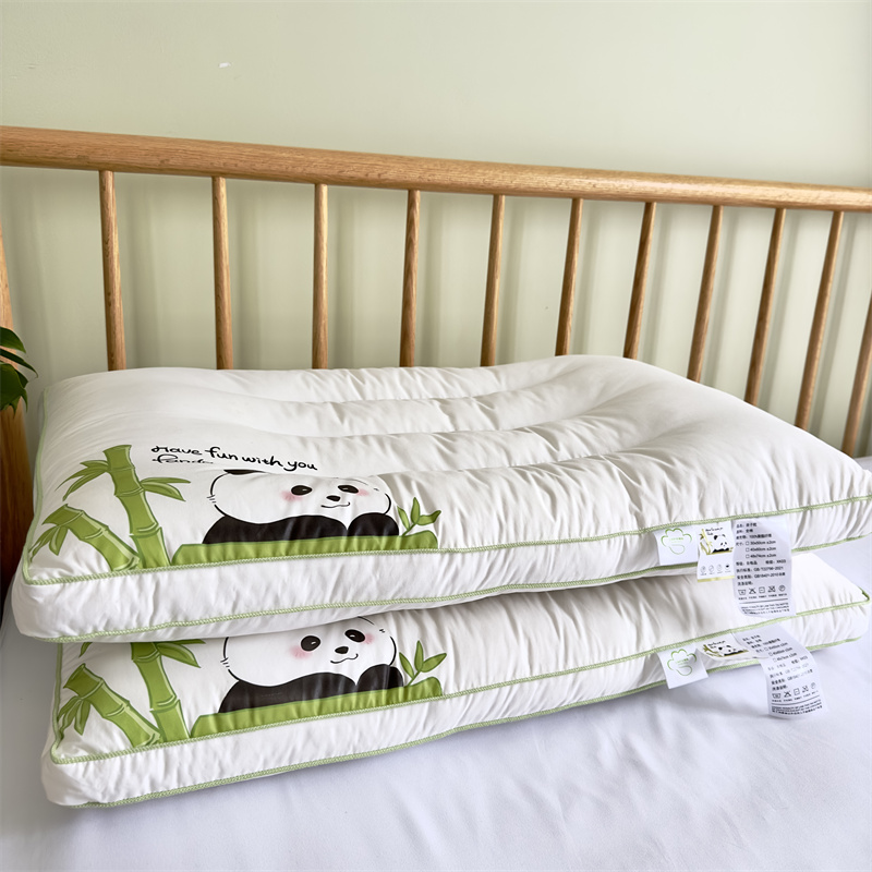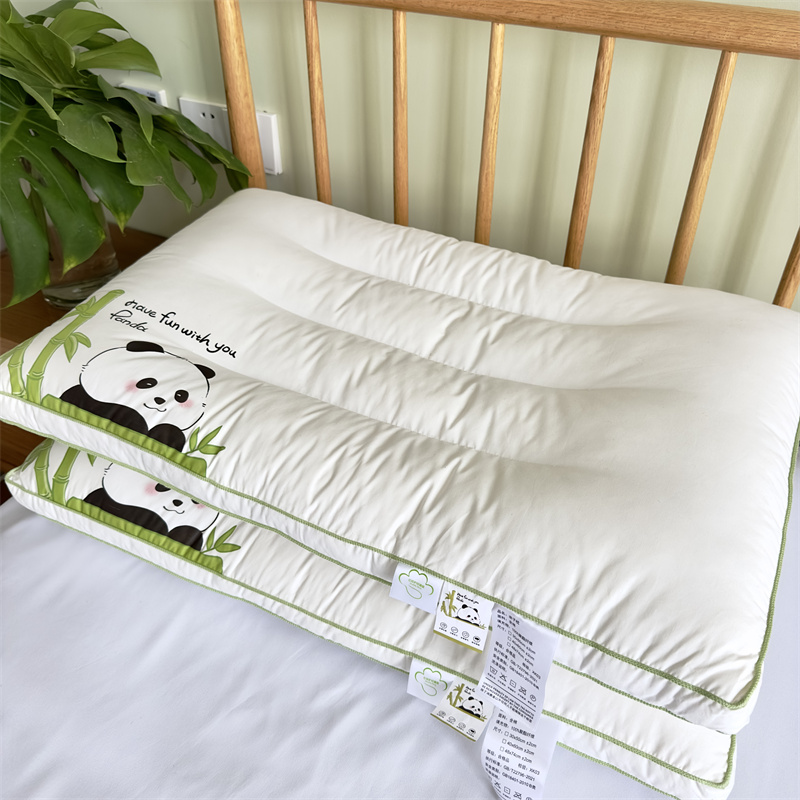 昕科 纯棉熊猫卡通儿童低枕头学生宿舍枕芯成人枕亲子款护颈枕