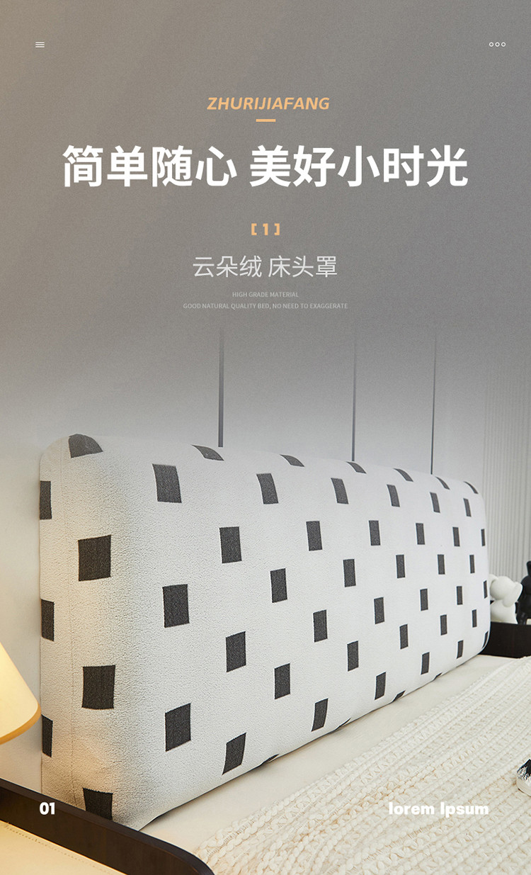 商品名称:(总)逐日 2023新款云朵绒-黑白系列床头罩