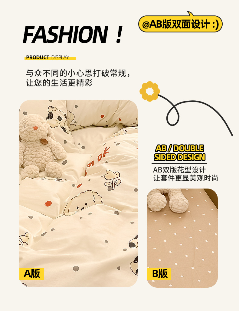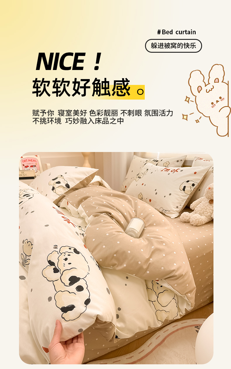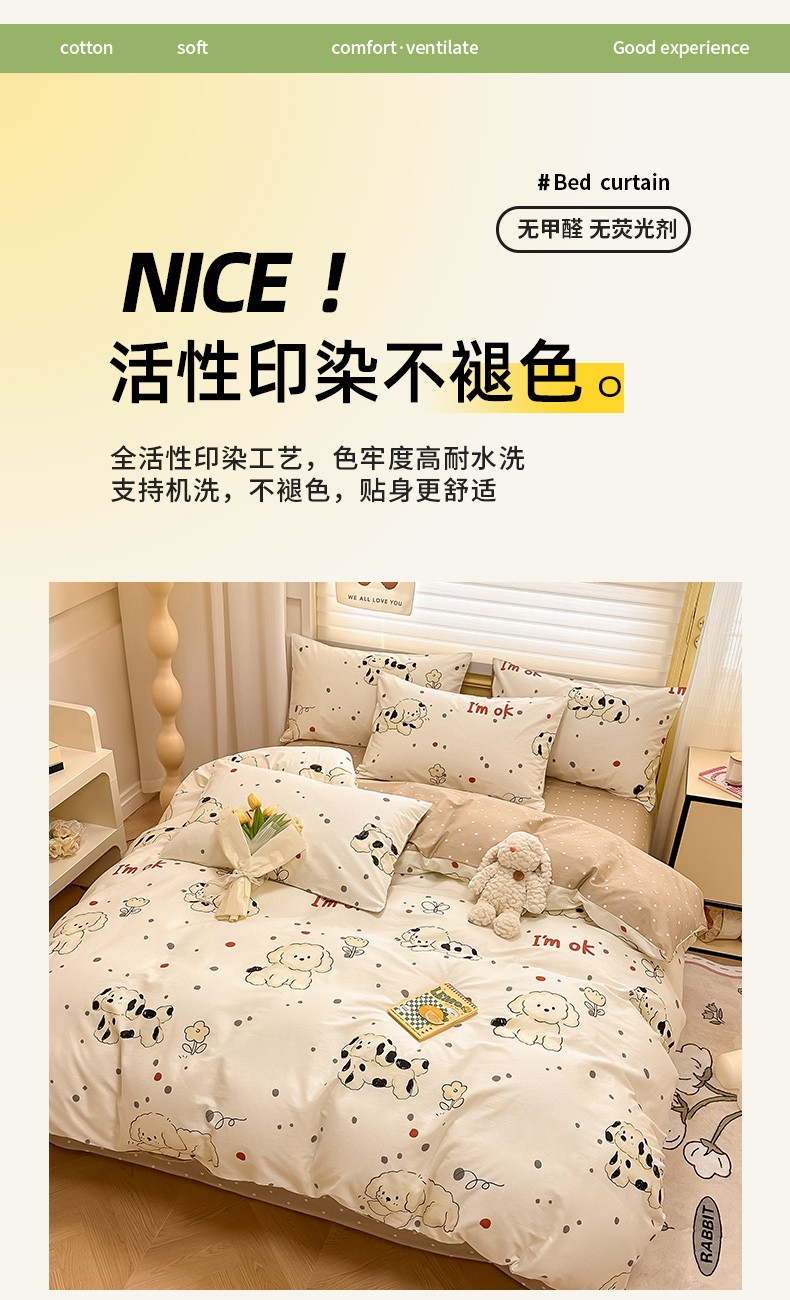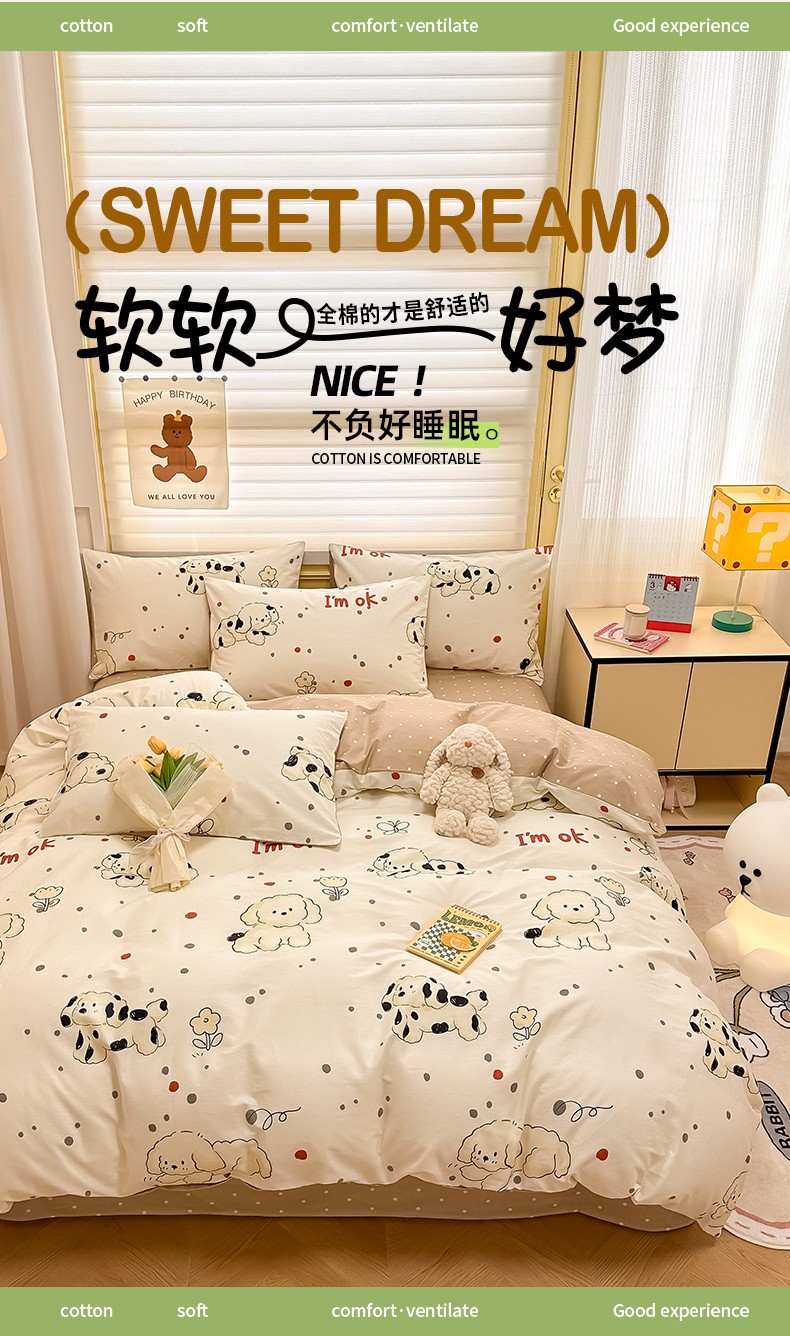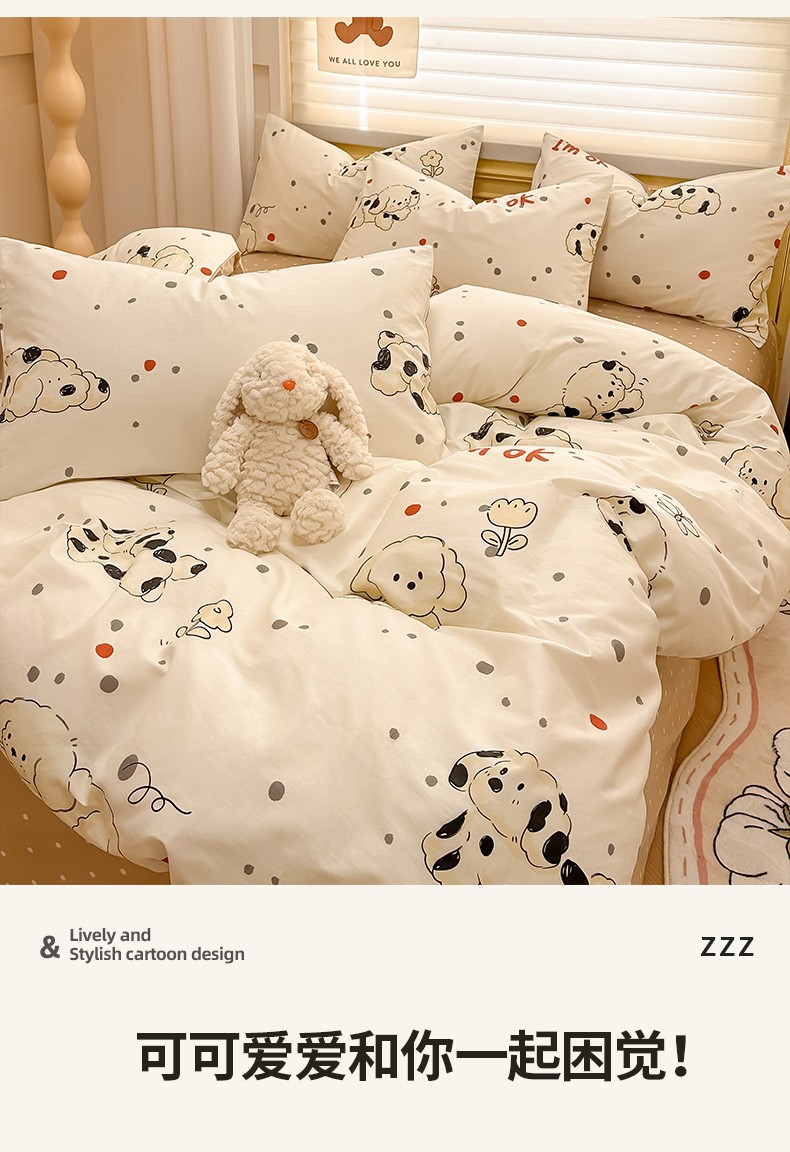 当前位置: 91家纺网 > 商品网购 > 床品套件 > 四件套 > 全棉普通四件套 > 晨希 2024春夏新款全棉13372印花四件套—卡通系列 斑点狗