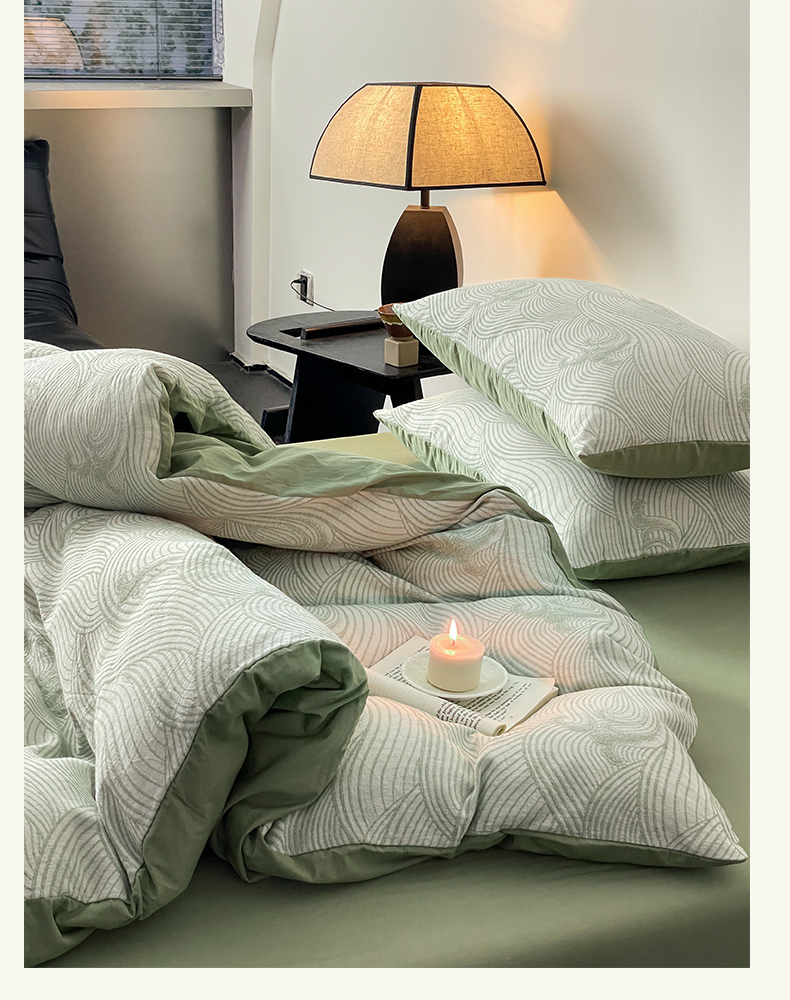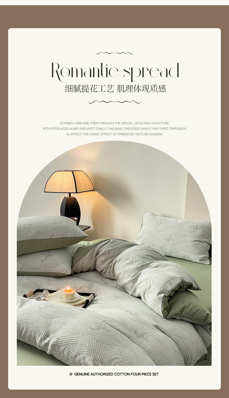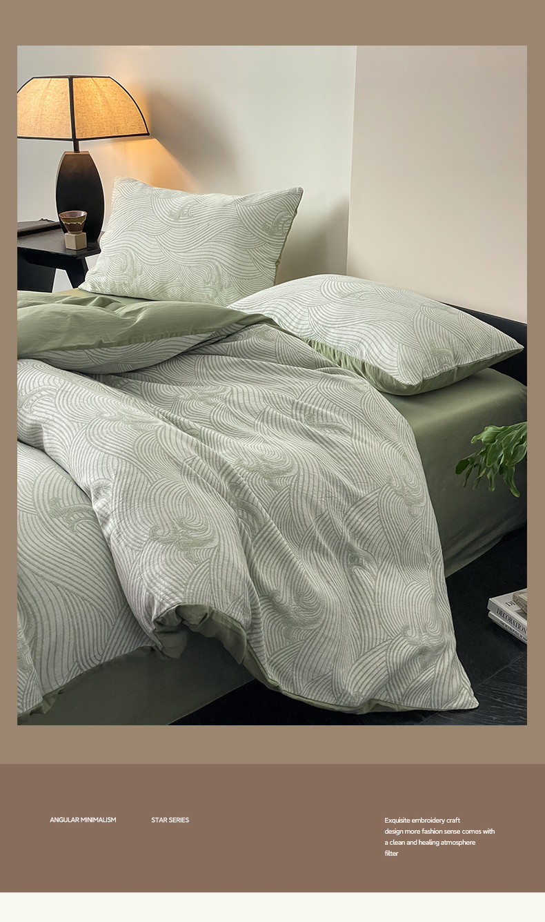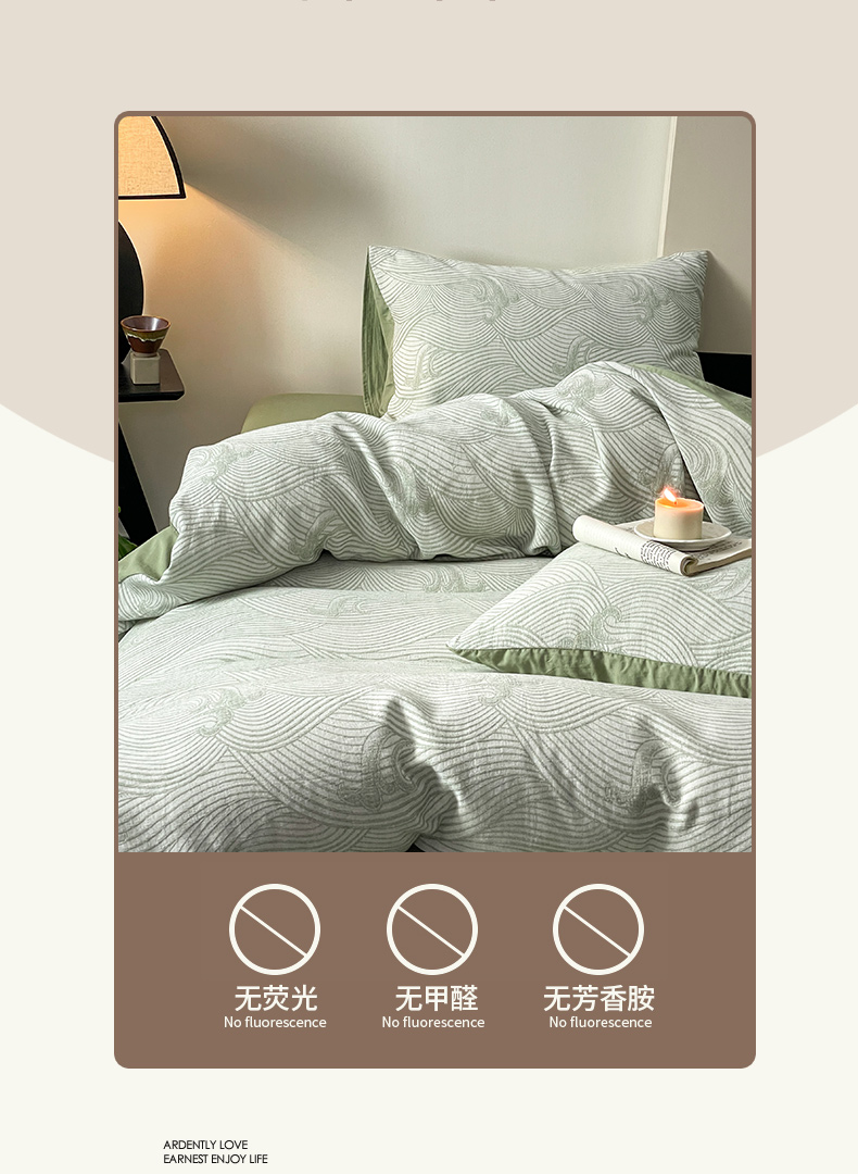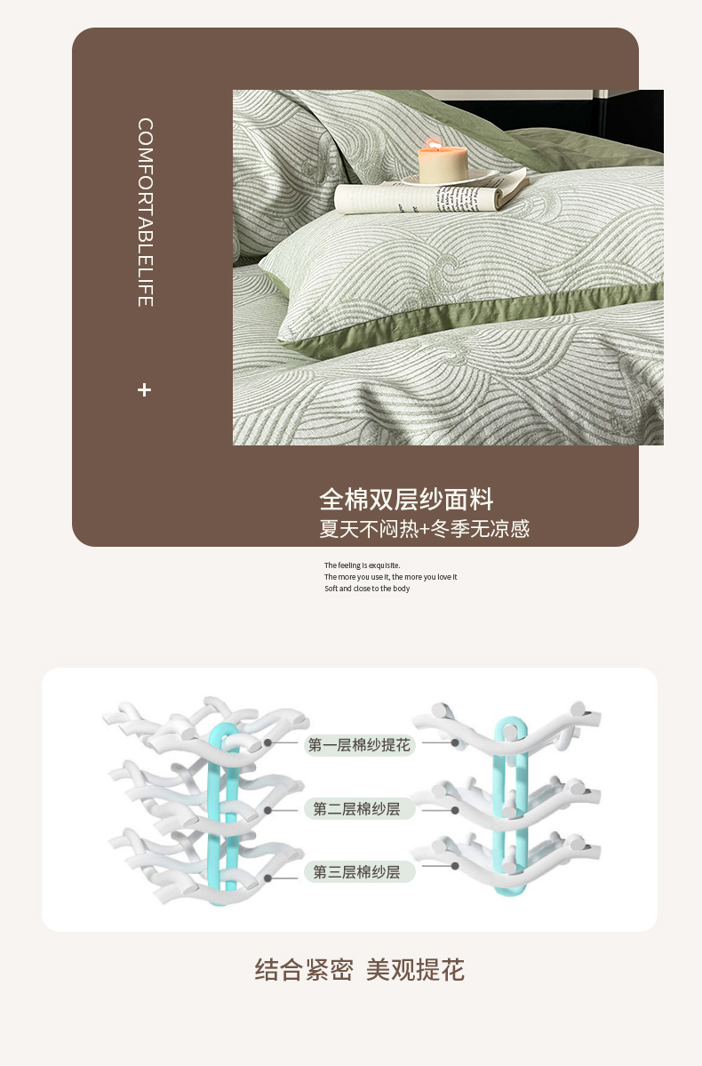 ab家纺 2024新款全棉三层纱提花四件套系列-浪花 浪花绿