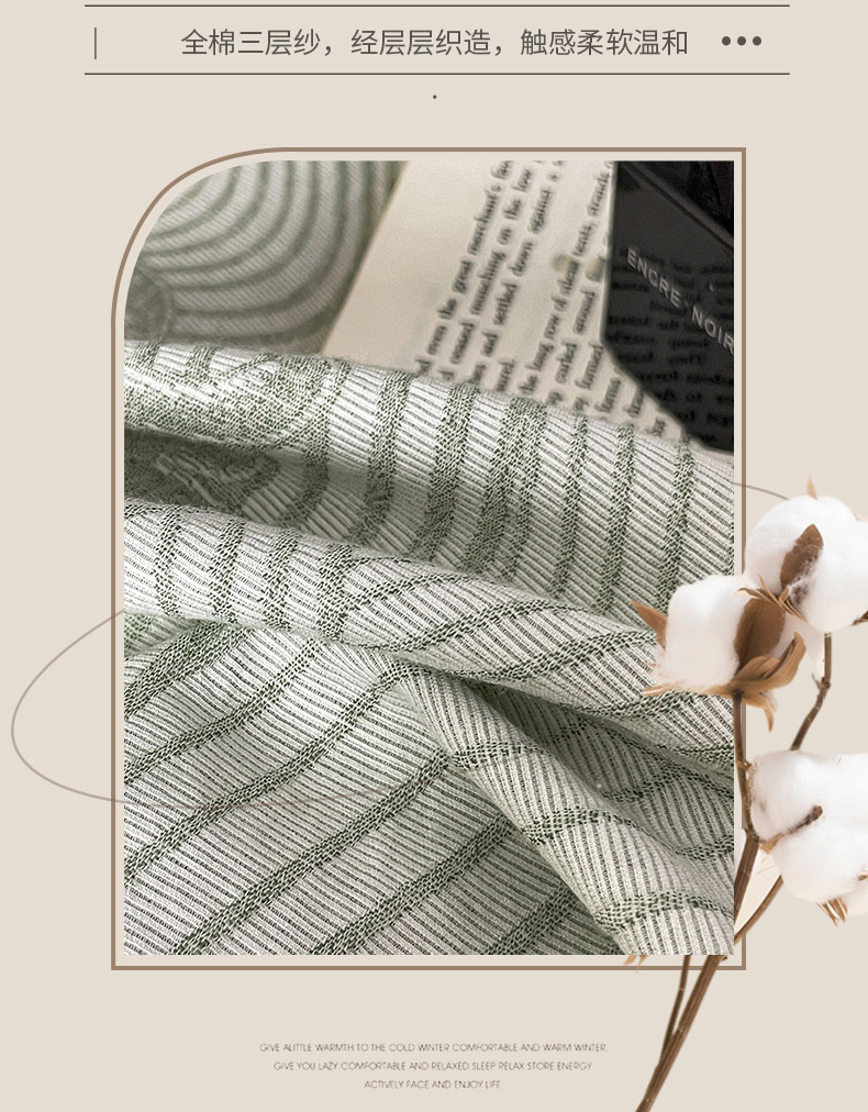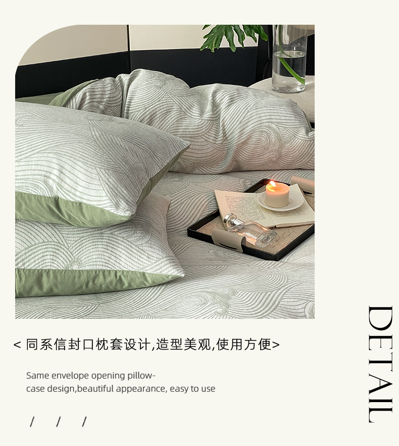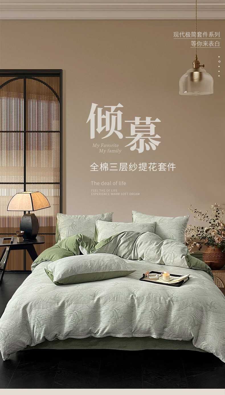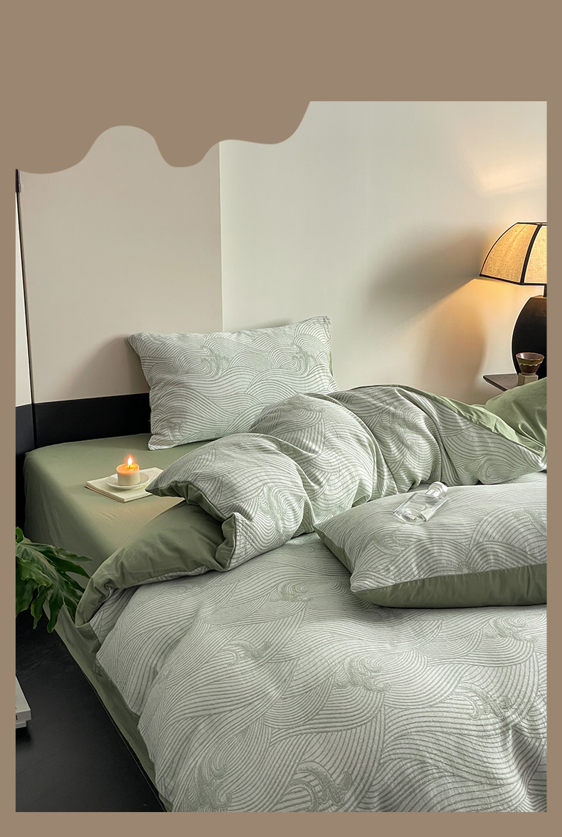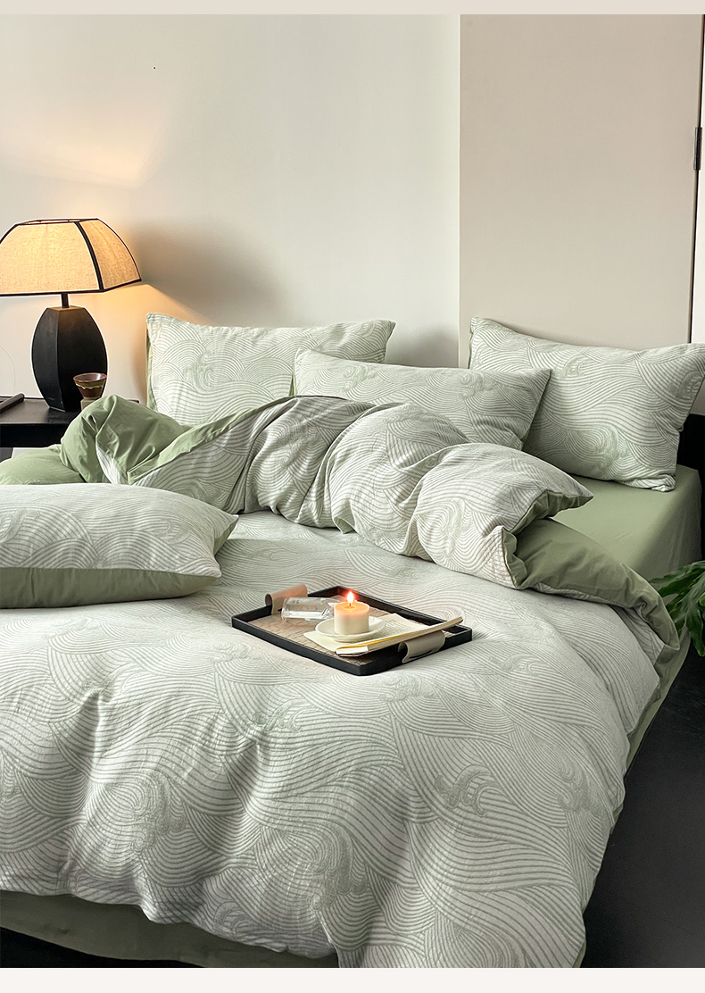 ab家纺 2024新款全棉三层纱提花四件套系列-浪花 浪花绿