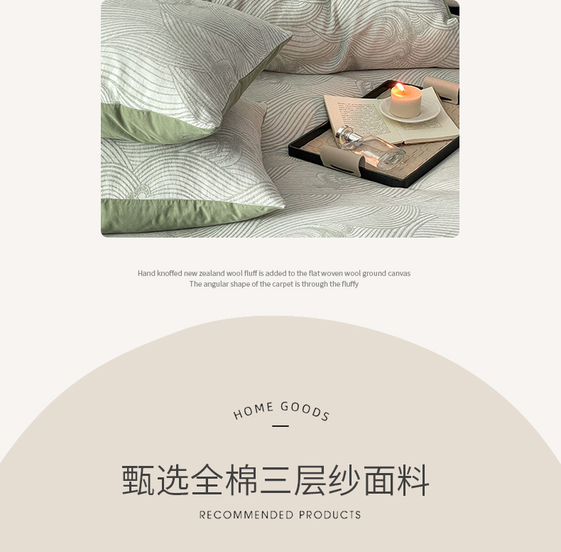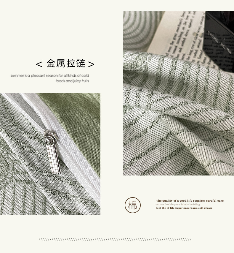 商品名称:ab家纺 2024新款全棉三层纱提花四件套系列-浪花 浪花绿